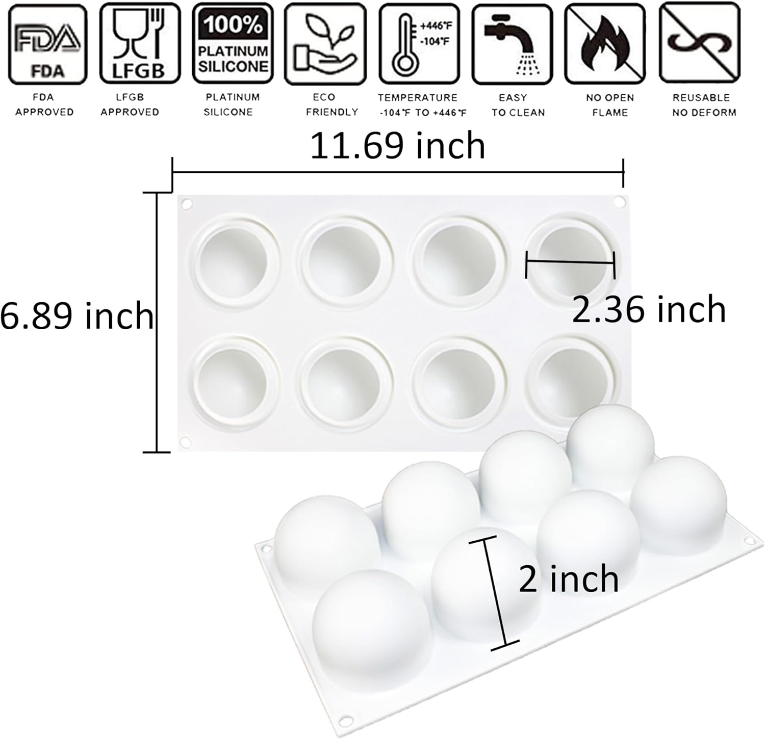 OCPO KITCHEN 3D Sphere Silicone Mold for Baking Mousse Cake Candy Pastry Chocolate Truffle Jelly Cookie Pudding, Ball Shape (8-Cavity)