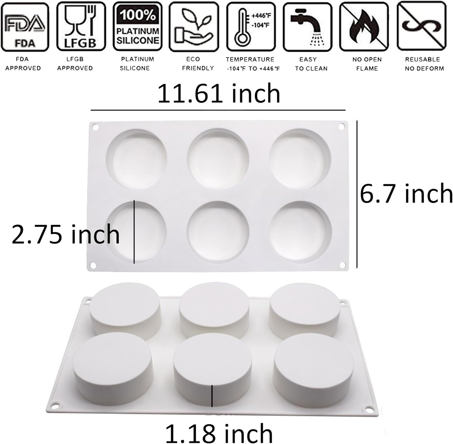 OCPO KITCHEN Cylinder Silicone Molds for Baking Mousse Cake, 3D Silicone Baking Mold for Candy Pastry Chocolate Truffle Cupcake Jelly Cookie Pudding Cake Decoration Mold, Flat Cylinder (6-Cavity)