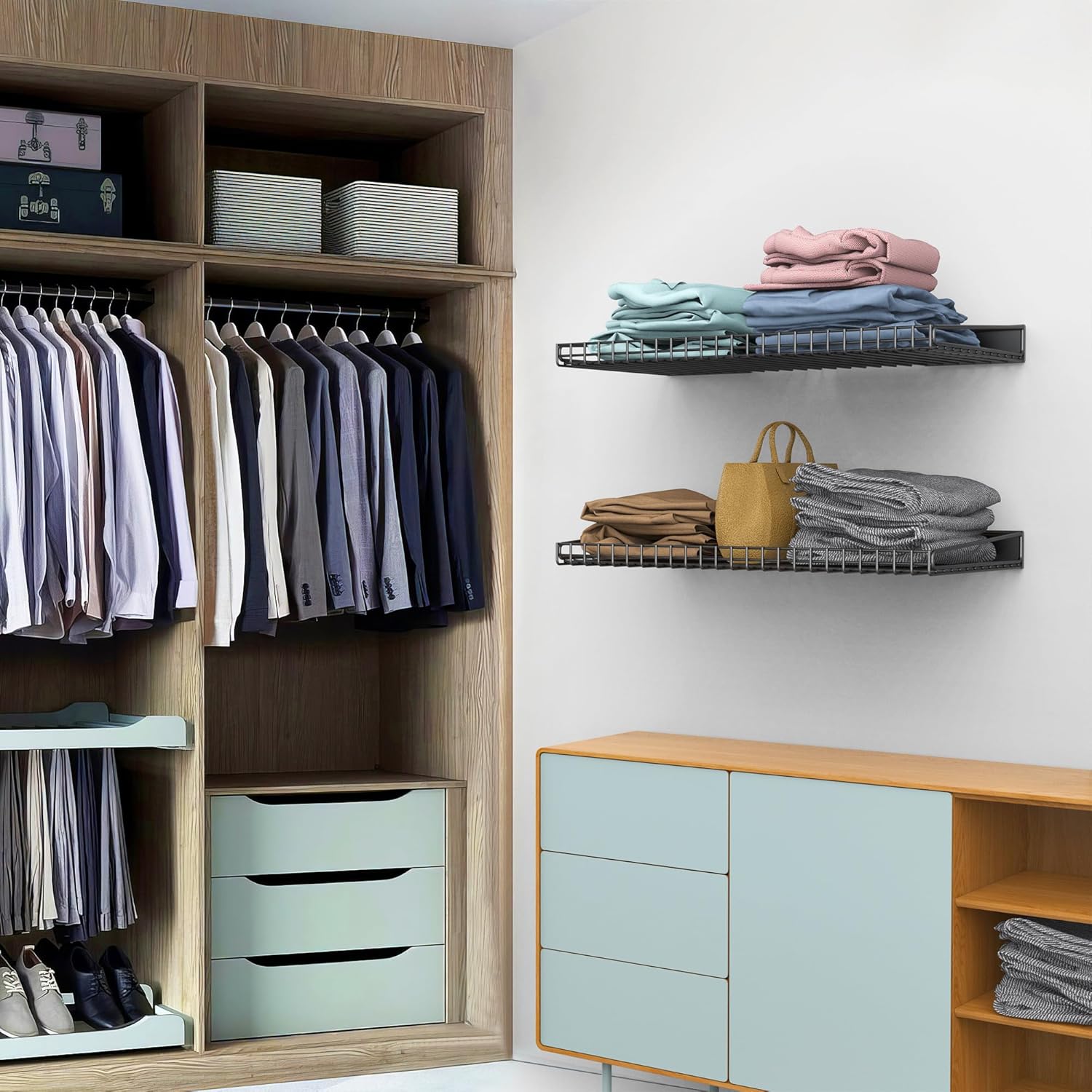 - Space Optimization: Maximize your garage space with these sturdy wall shelves, offering an efficient storage solution. Organize tools, equipment, and more, freeing up valuable floor space for your vehicles or other activities