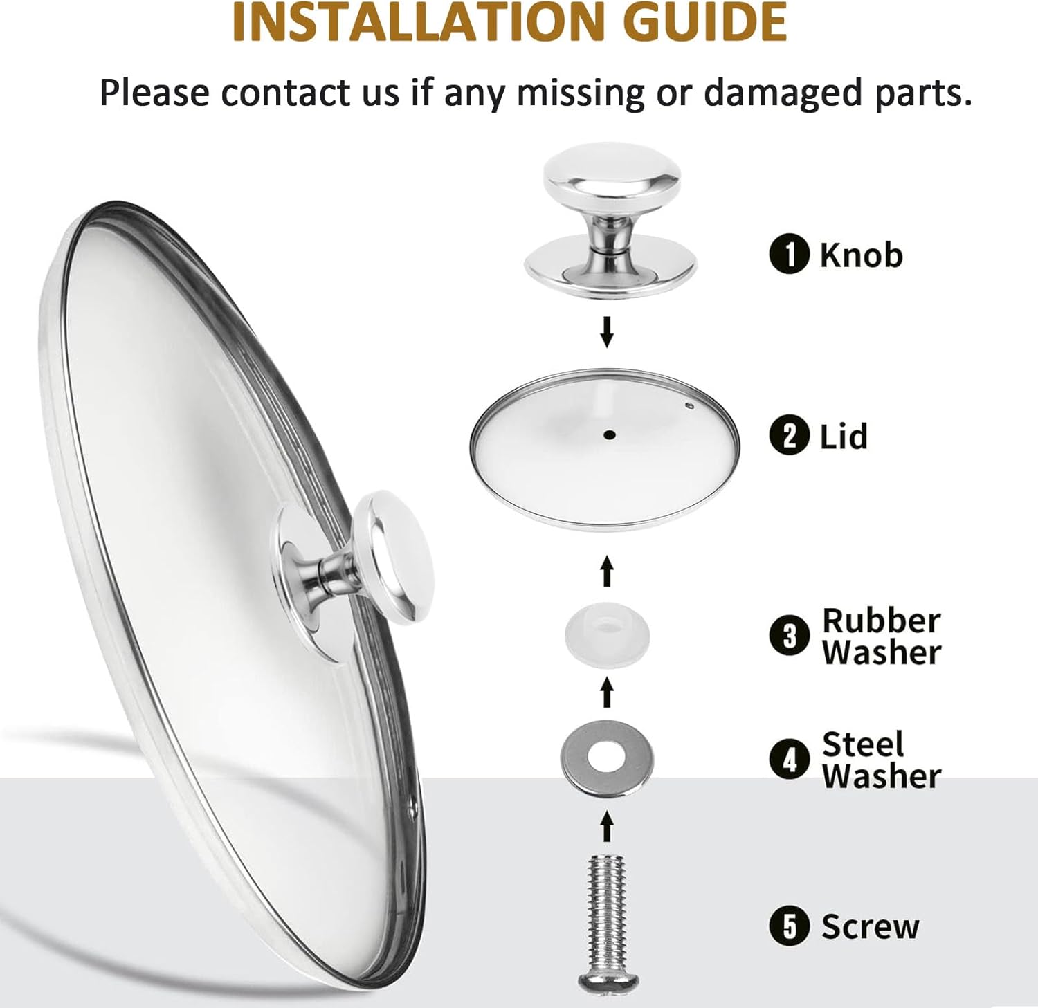 - ✔ TEMPERED GLASS & STAINLESS STEEL RIM – The glass lids are made of tempered glass,strong and durable. The edge of the lid is made with stainless steel material, make sure the safe cooking without rust (Please contact us if any broken during shipping)