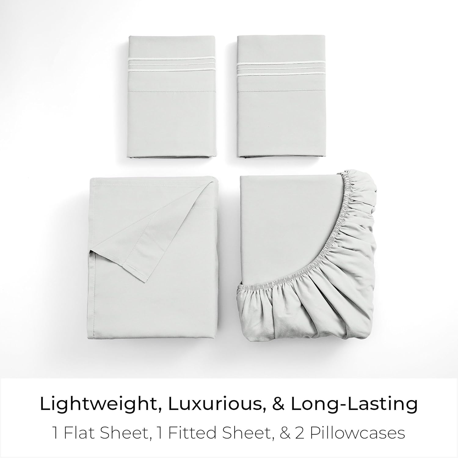 - Complete 4-Piece Full Bedding Set - Includes 1 Fitted Sheet (54"x75"x16"), 1 Flat Sheet (81"x96"), & 2 Pillowcases (20"x30") - all crafted from double-brushed microfiber for an ultra-soft feel. Temperature-regulating to keep you cozy in winter and cool in summer.