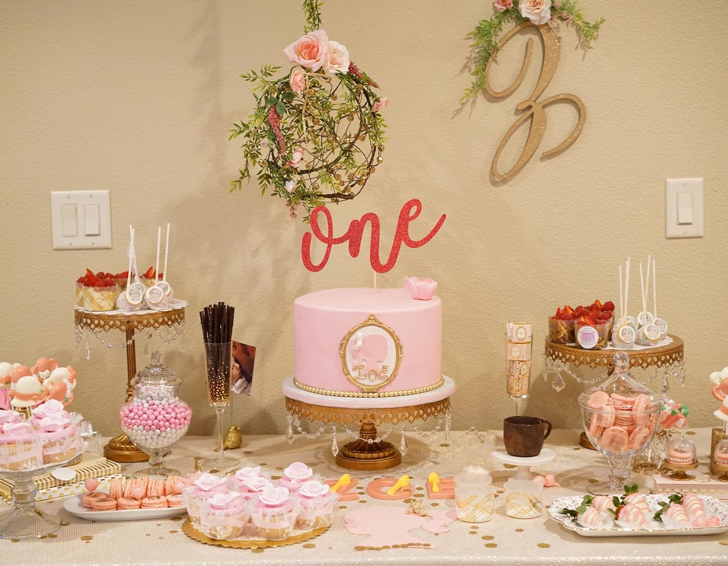 First Birthday Cake Topper - Red Glitter One Cake Decorating Supplies for Girls and Boys, Perfect for Baby Shower/Gender Revealing Party/Baby Party Photo Booth Props