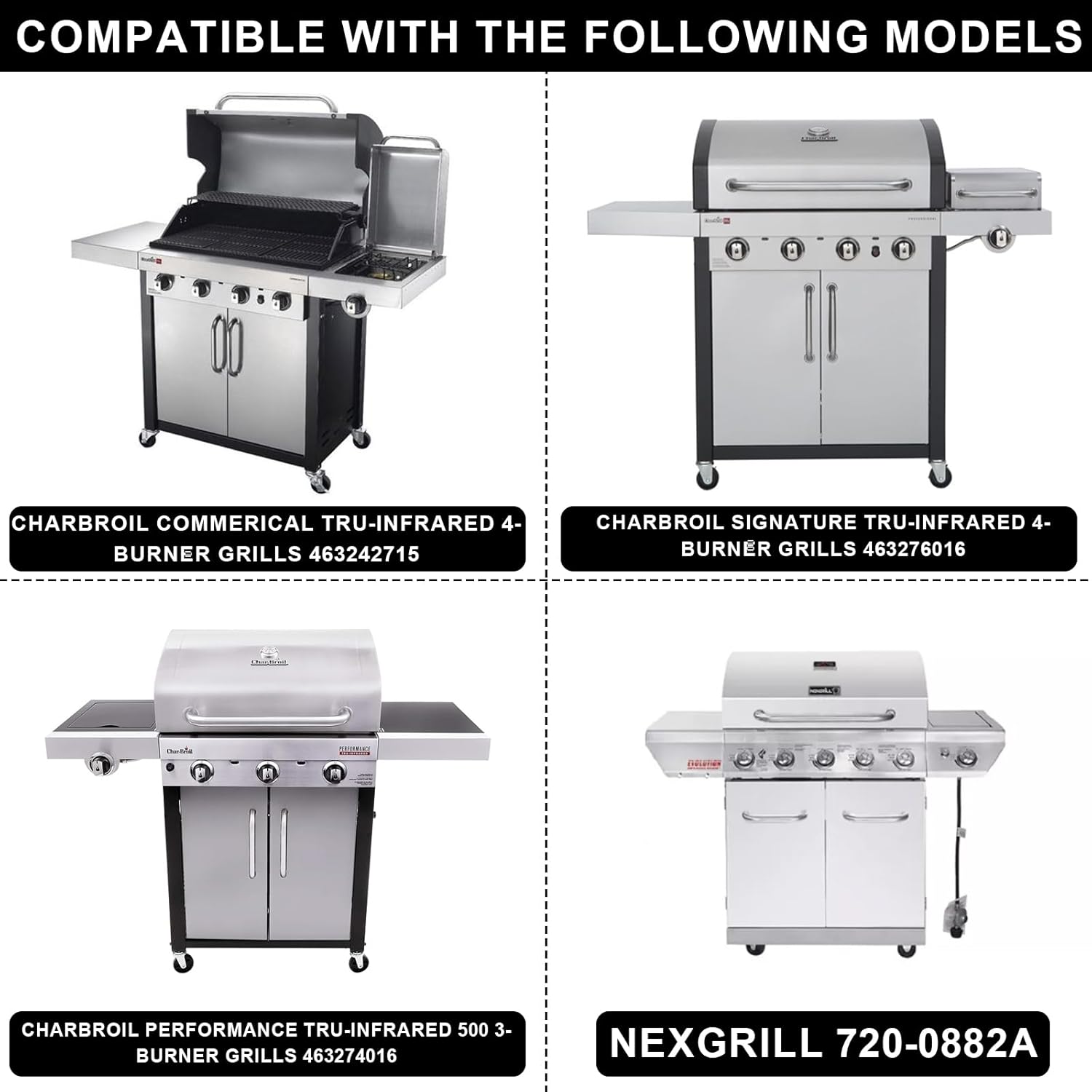 - ▶▶Compatible Models:For charbroil tru-infrared grill replacement parts for Walmart 555179228,Nexgrill 720-0882A, 720-0882D, BHG 720-0882, Members Mark 720-0830G,Lowe's 606682, Lowe's 639322.