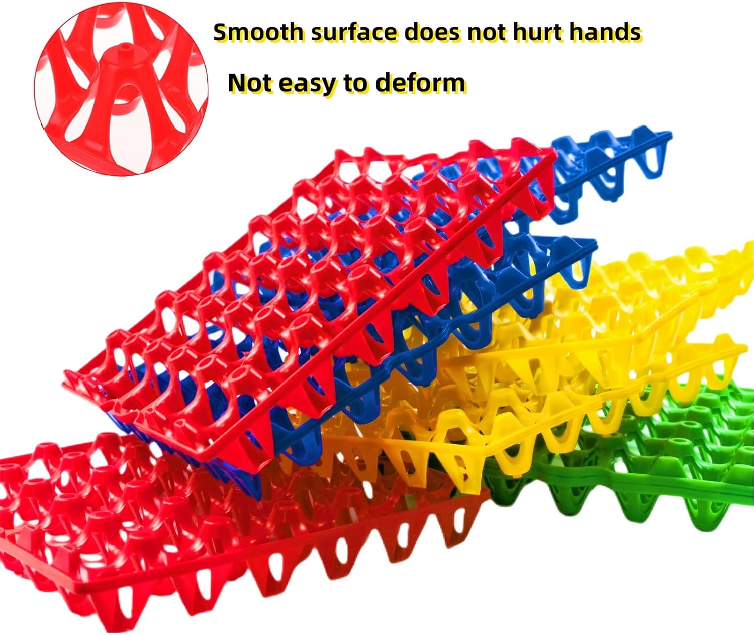 - Material - Made of high-quality PP plastic. Durable, economical, stackable, and reusable. The classification of four colors allows users to distinguish egg size, time, and maintain great support and organization for multiple eggs without any issues.