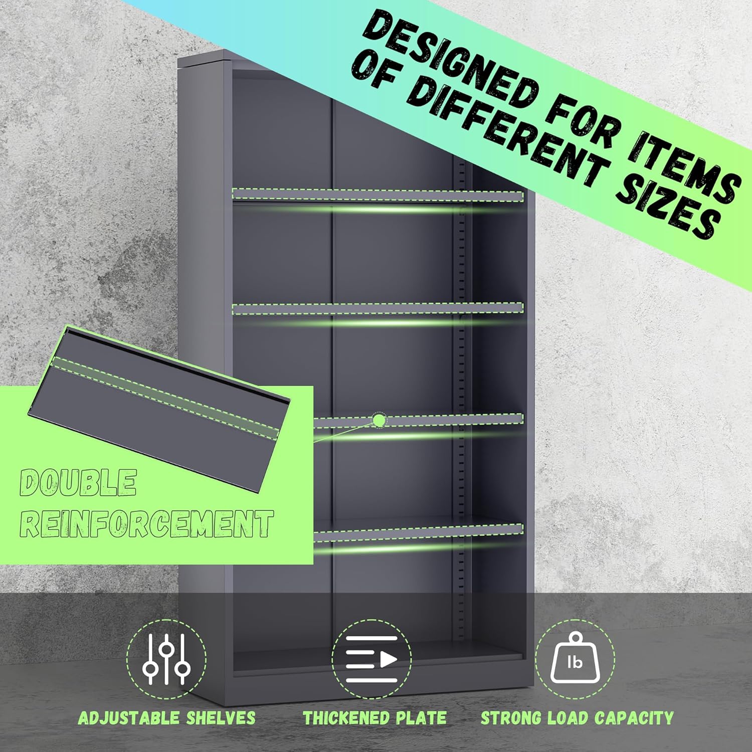 - 【Heavy duty cabinet】: Intergreat large metal storage cabinets are made of high-quality cold rolled steel with a steel plate thickness of 0.8mm, which is stronger and more durable than other cabinets. The garage storage system uses new imported paint, which is scratch and wear-resistant, extending the use of the garage cabinet and easy to keep clean.