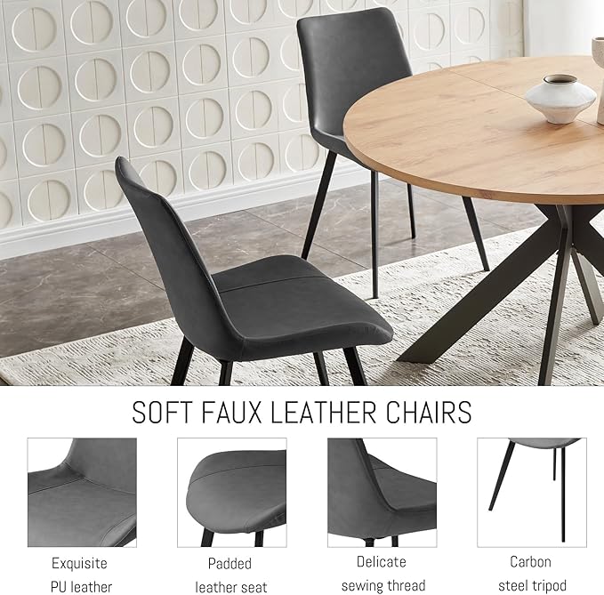 46.4" Round Dining Table Set, Mid Century Modern Round Dining Table for 4-6 Person, w/Steel Legs, Coffee Table for Kitchen Dining Room, Office, Save Space