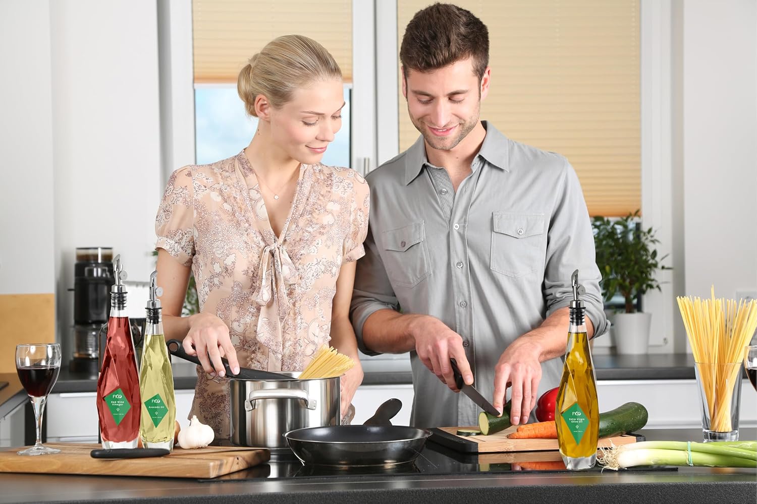 - ✔️ EASY AND CONVENIENT - Kitchen oil dispenser bottle for home or restaurant is designed for easy and mess-free pouring, These olive oil bottles automatically opened when pouring down and closed when pouring up vertically without manual closing. Free up your hands while you're busy cooking, making it a convenient addition to any kitchen,The easy-to-use spout ensures controlled pouring and helps prevent spills and leaks.