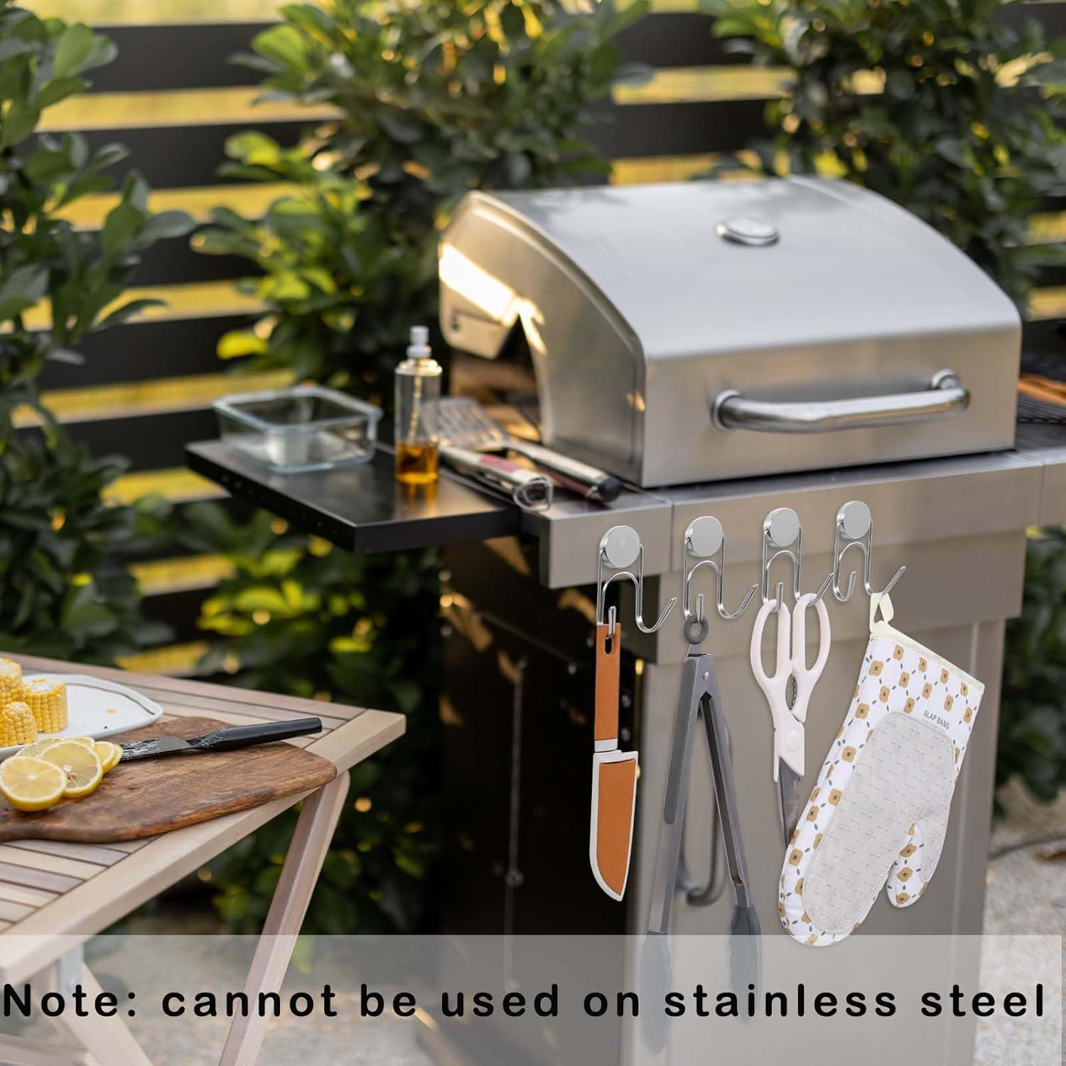 Magnetic Hooks Heavy Duty 304 Stainless Steel Hooks,Magnets Hanging Hooks for Refrigerator Grill Toolbox Cabins Outdoor,Cruise Essentials Camper Accessories,8pack(Silver 1.1in-2-40 8p)