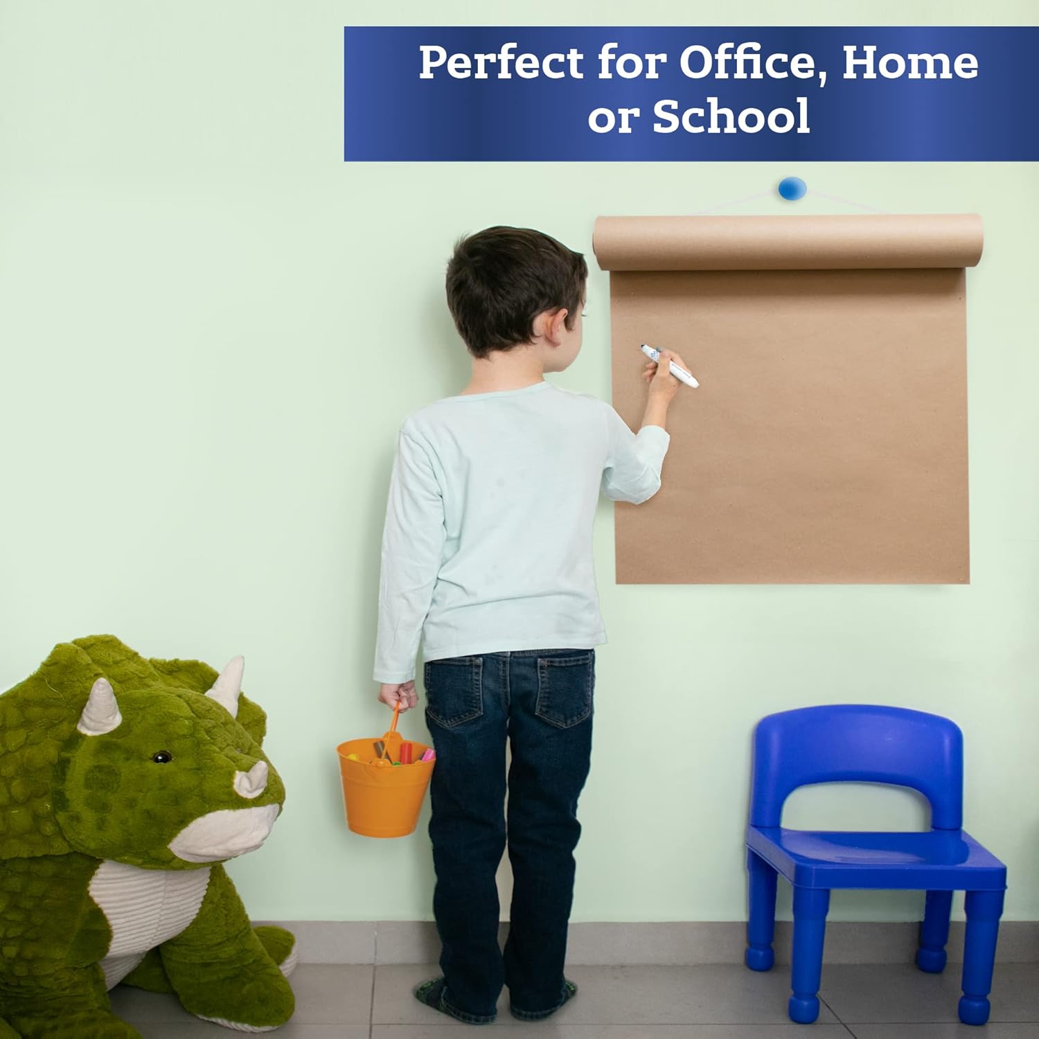 - Classic Brown Paper Roll: Our light brown crafting paper roll is 17.5 inches wide and 1800 in (150 feet) long rolled on a 1.25" cardboard core tube that can easily be installed on wall-mount or craft desks dispensers that will allow you to cut it down to any size.