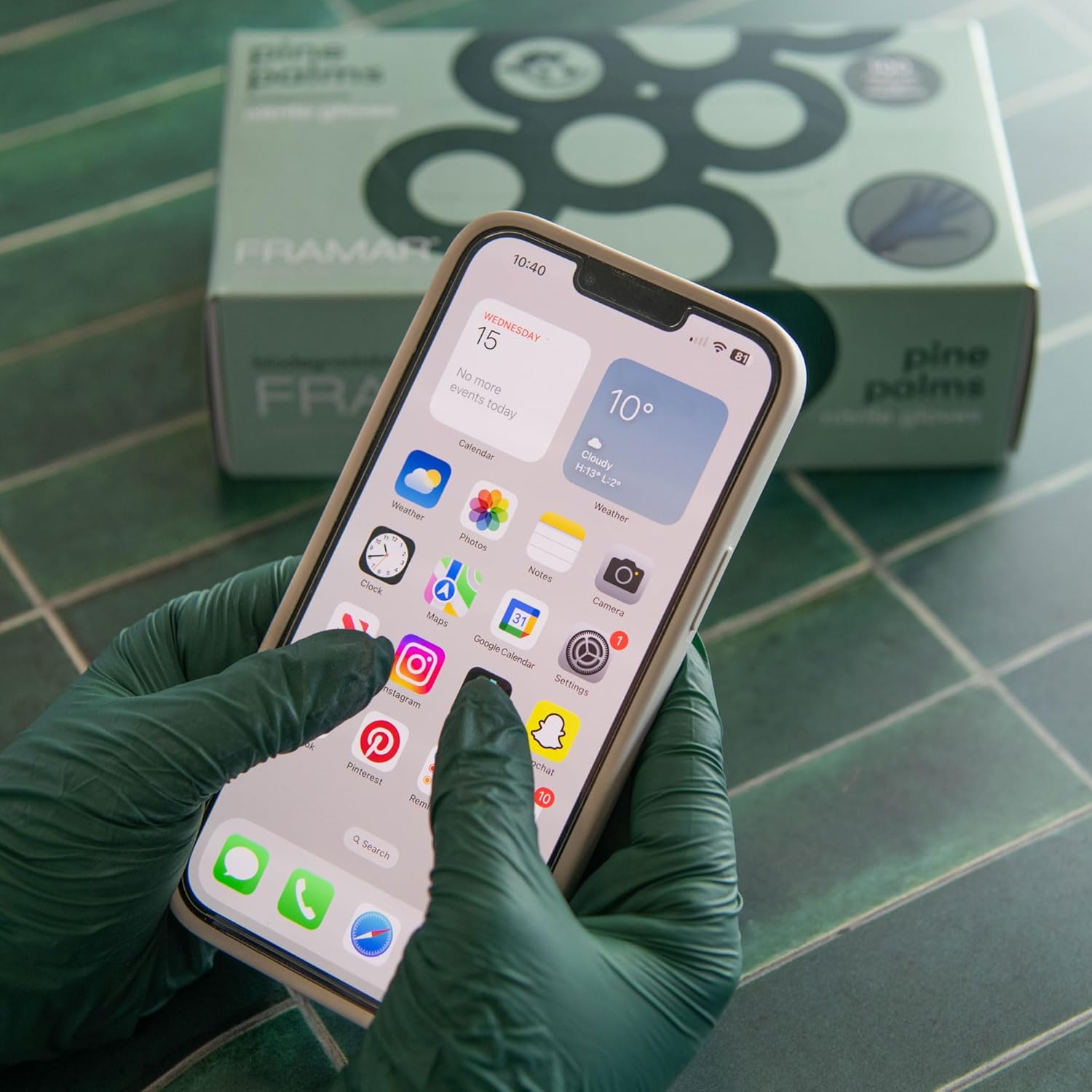 FRAMAR Biodegradable Green Gloves Latex Free Large – Disposable Nitrile Gloves Large, Cleaning Rubber Glove Disposable, Non Latex Hair Dye Glove 100 Pk