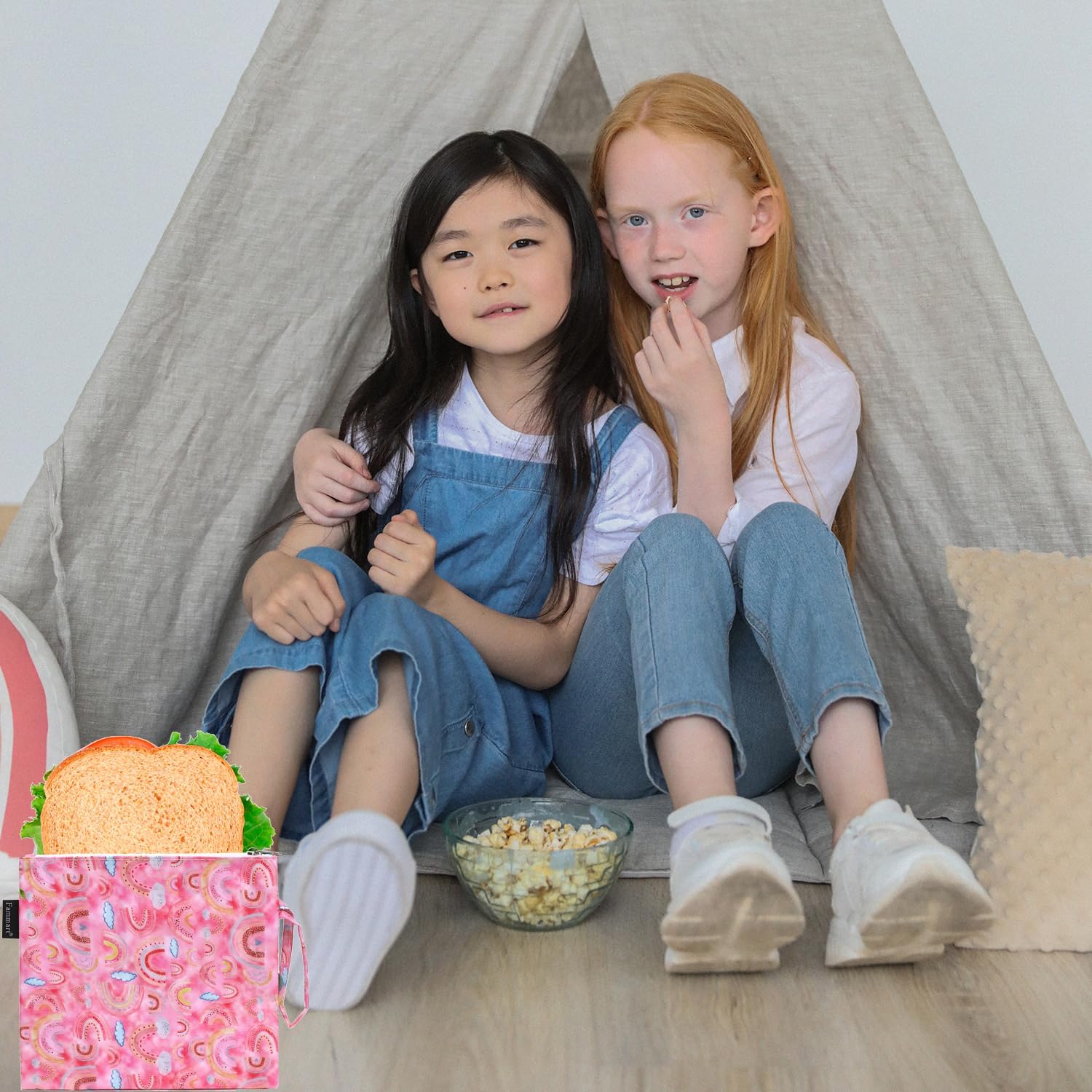 Reusable Sandwich Bag/Snack Bag for Kids & Adults, Dual Layer Lunch Bag with Handle, Washable, Food Safe, BPA Free (1-Pack, Rainbow)