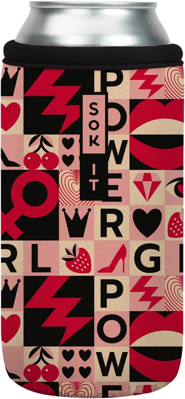Sok It CanSok Sleeve for Beer & Soda Insulated Neoprene Cover (Girl Power, 16oz Can Sleeve)
