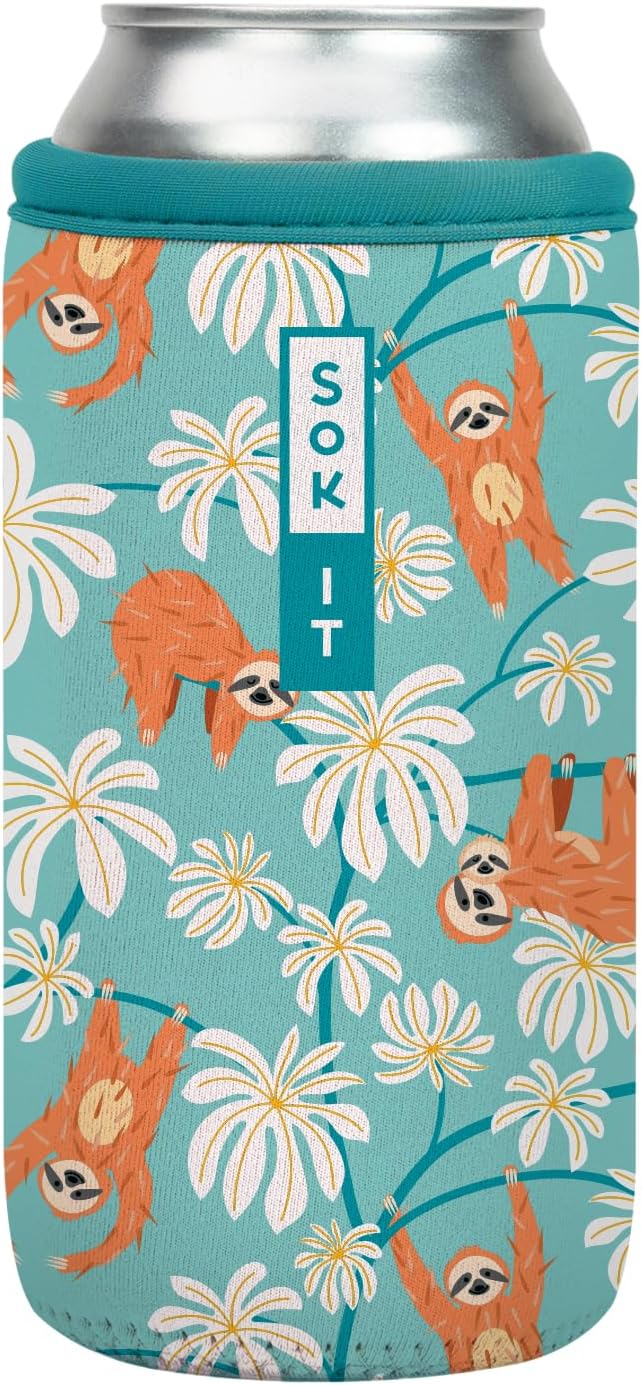Sok It CanSok Sleeve for Beer & Soda Insulated Neoprene Cover (Slothing Around, 16oz Can Sleeve)