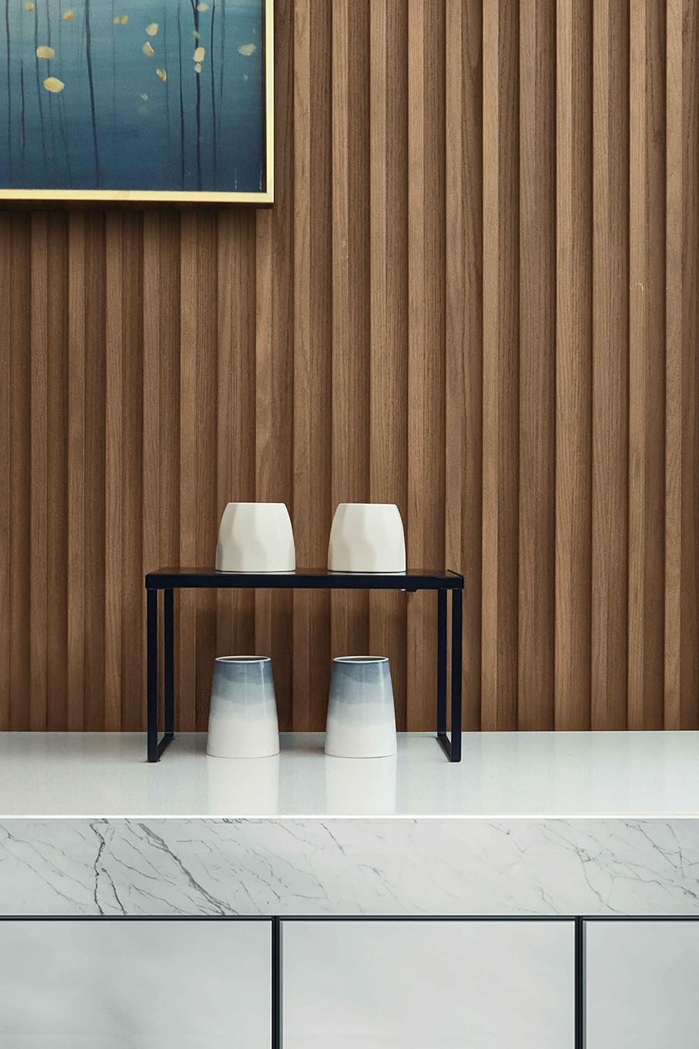 - SPECIFICATION: 8.26’’D * 14.56-24.6’’W * 8.46’’H. If you purchase 2 of these expandable shelves set you can stack one of top of another thereby creating a two-tier storage space. Easy to assemble with a clear manual.