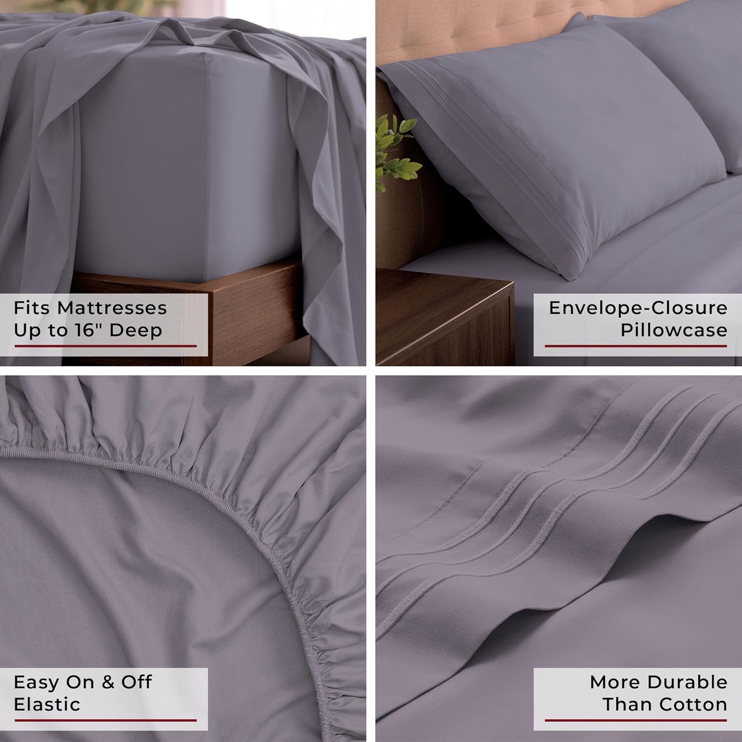 Mellanni California King Sheets Set - 4 PC Iconic Collection Bedding - Hotel Luxury, Extra Soft, Cooling Bed Sheets - Wrinkle, Fade, Stain Resistant (Cal King, Hazy Lilac)