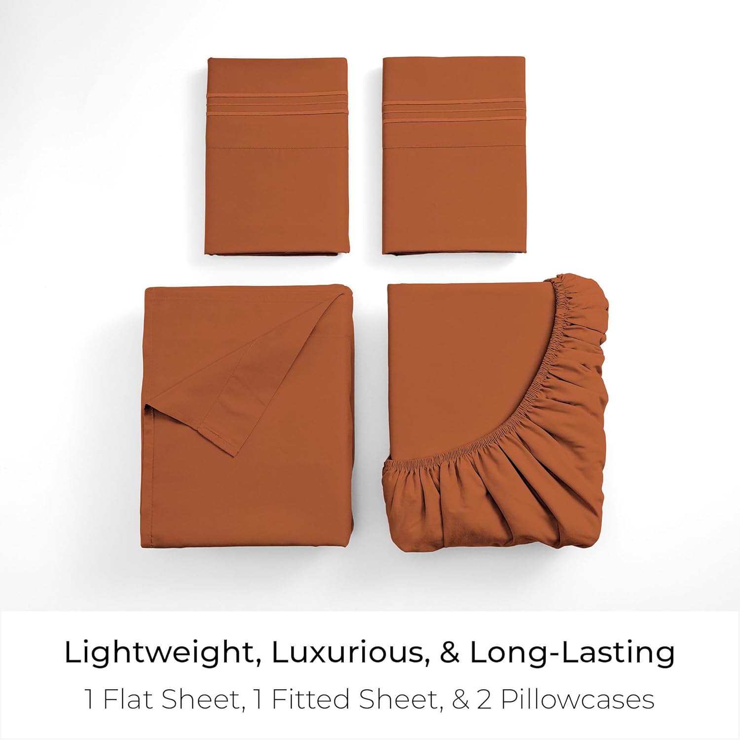 Mellanni Queen Sheets Set - 4 PC Iconic Collection Bedding - Hotel Luxury, Extra Soft, Cooling Bed Sheets - Wrinkle, Fade, Stain Resistant (Queen, Terracotta)