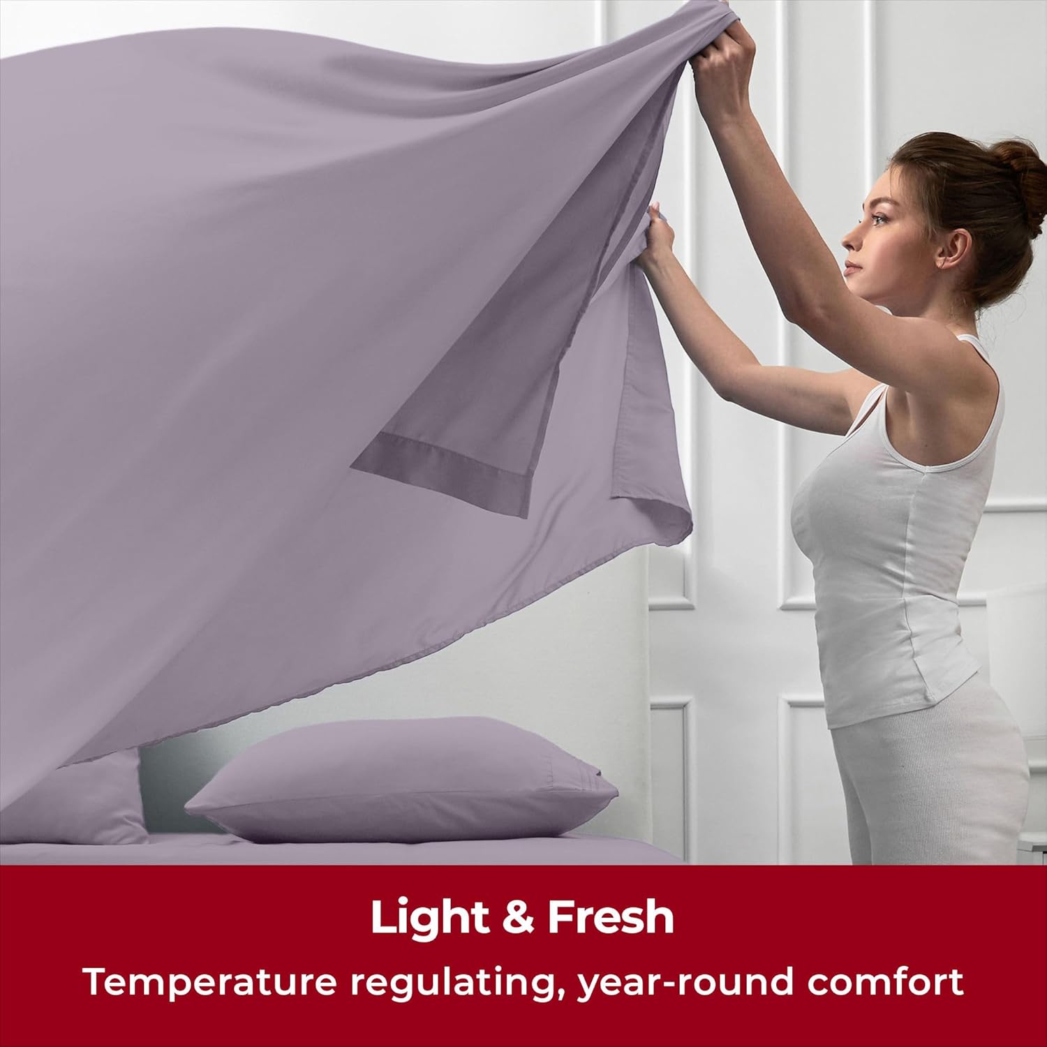 Mellanni Twin Sheets Set - 3 PC Iconic Collection Bedding - Hotel Luxury, Extra Soft, Cooling Bed Sheets - Wrinkle, Fade, Stain Resistant (Twin, Hazy Lilac)