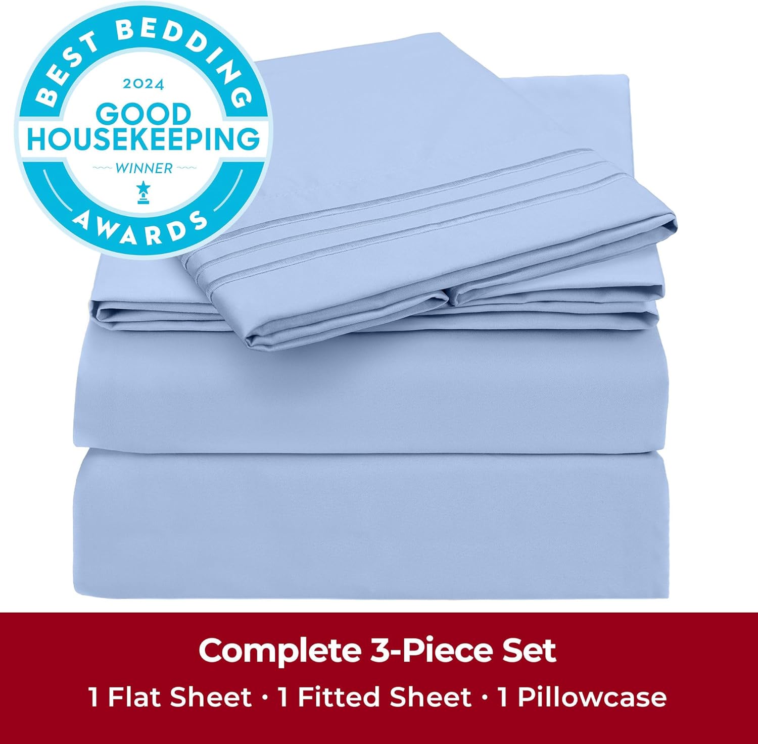 Mellanni Twin Sheets Set - 3 PC Iconic Collection Bedding - Hotel Luxury, Extra Soft, Cooling Bed Sheets - Wrinkle, Fade, Stain Resistant (Twin, Sky Blue)