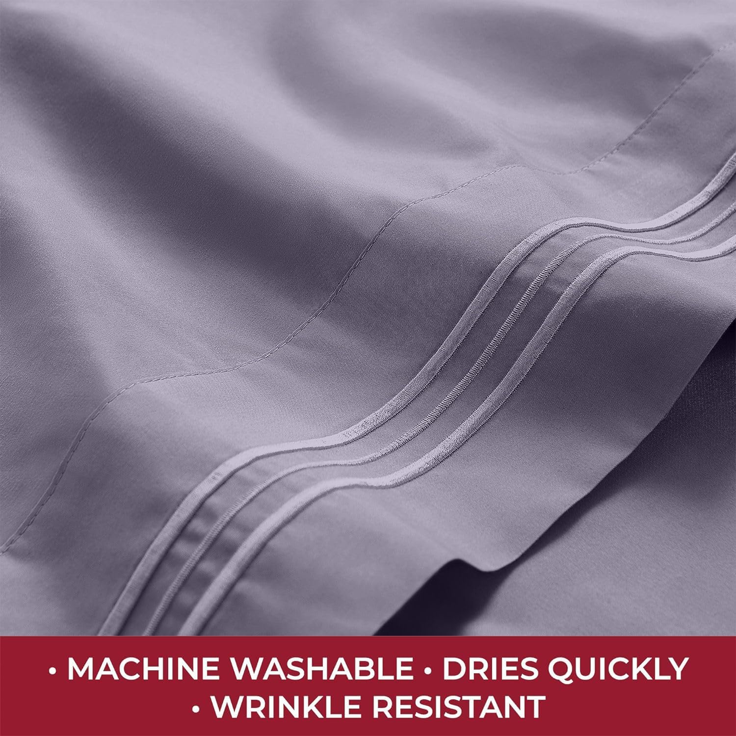 Mellanni RV Short Queen Sheets - 4 PC Iconic Collection Bedding - Hotel Luxury, Extra Soft, Cooling Bed Sheets - Deep Pocket up to 10 inch (RV/Short Queen, Hazy Lilac)