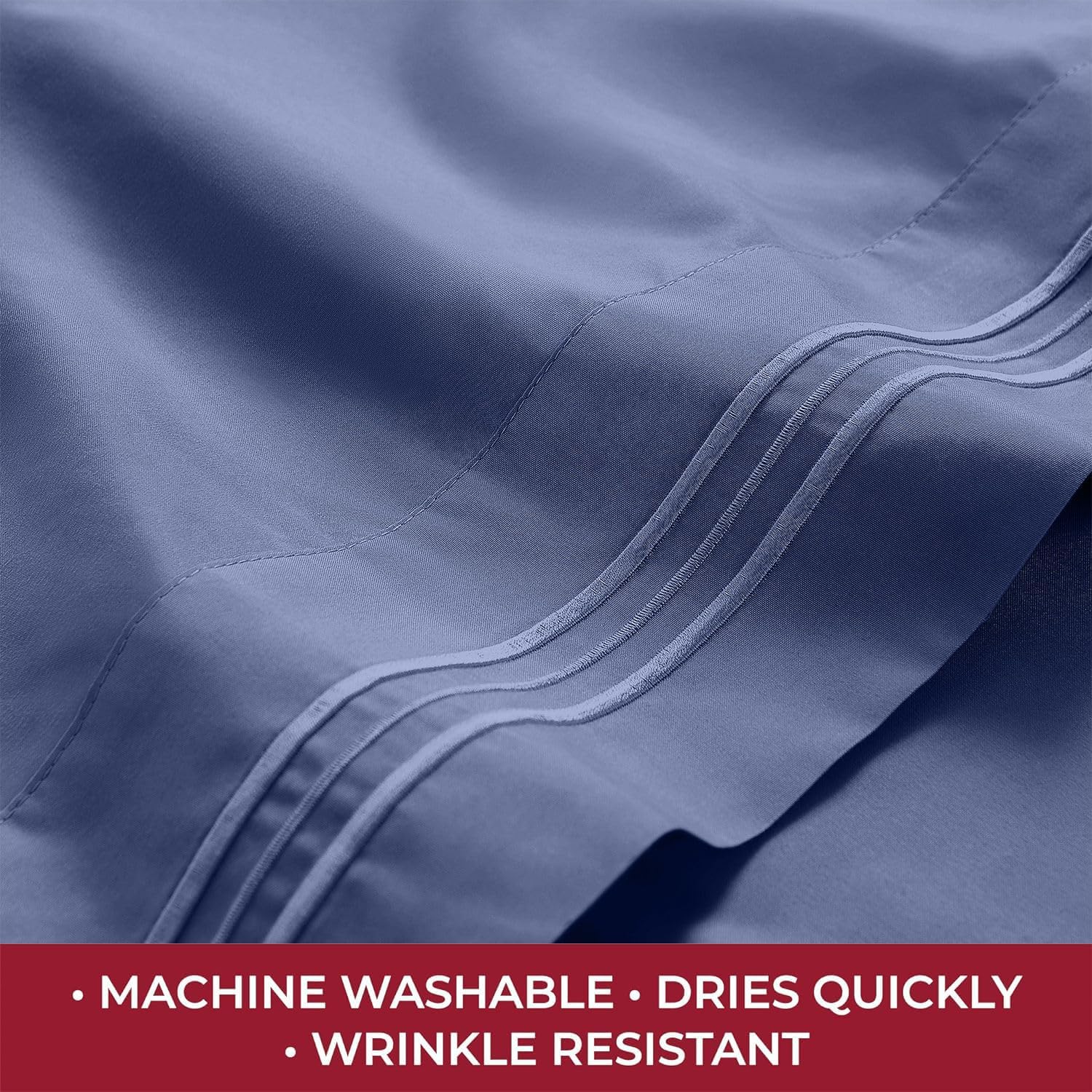 Mellanni RV Short Queen Sheets - 4 PC Iconic Collection Bedding - Hotel Luxury, Extra Soft, Cooling Bed Sheets - Deep Pocket up to 10 inch (RV/Short Queen, Blue Nova)