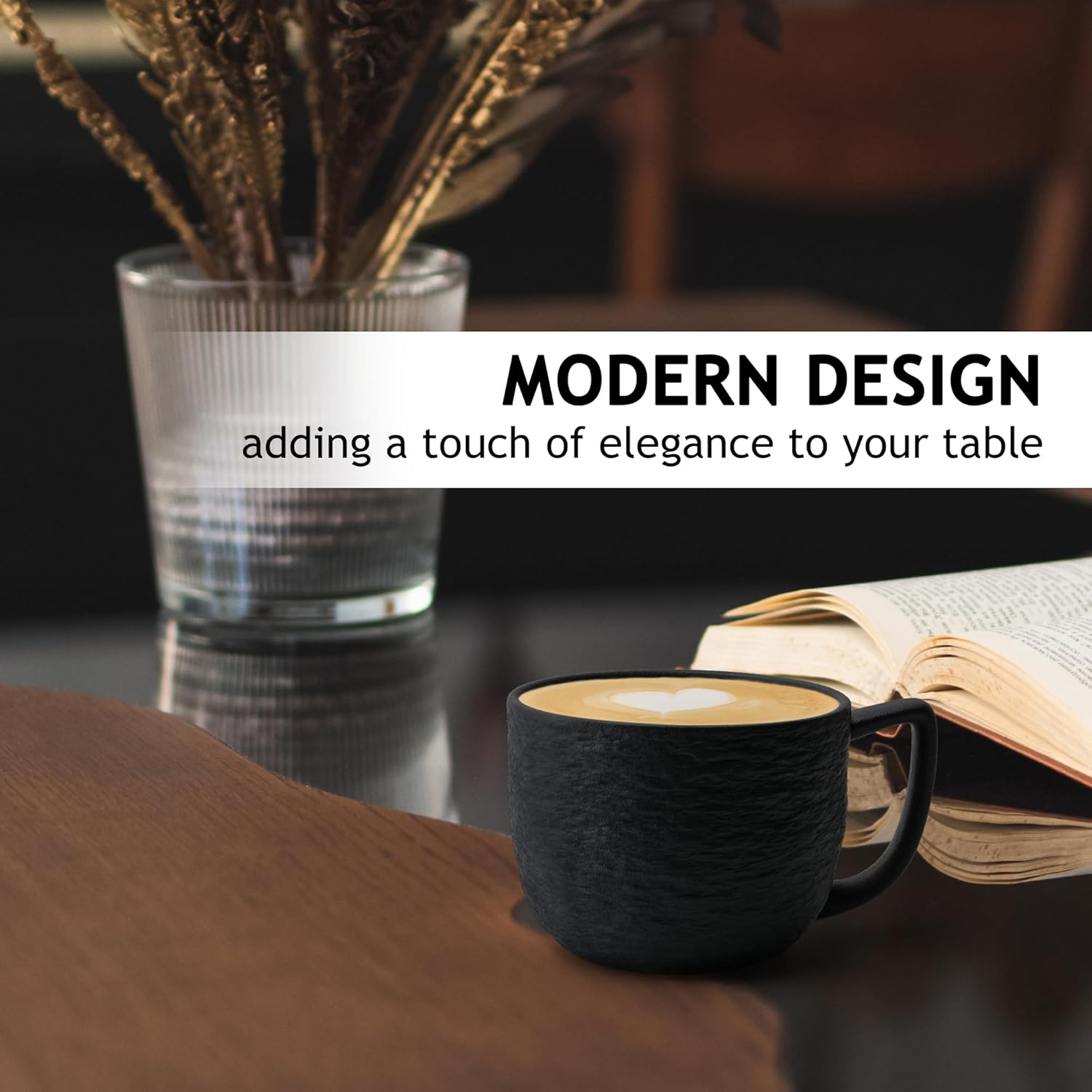 - 𝐌𝐎𝐃𝐄𝐑𝐍 𝐃𝐄𝐒𝐈𝐆𝐍 - The 4-cup set has a modern look and gives the coffee cup a classy and high-quality appearance. The coffee glasses fit into any household and are a great everyday companion.