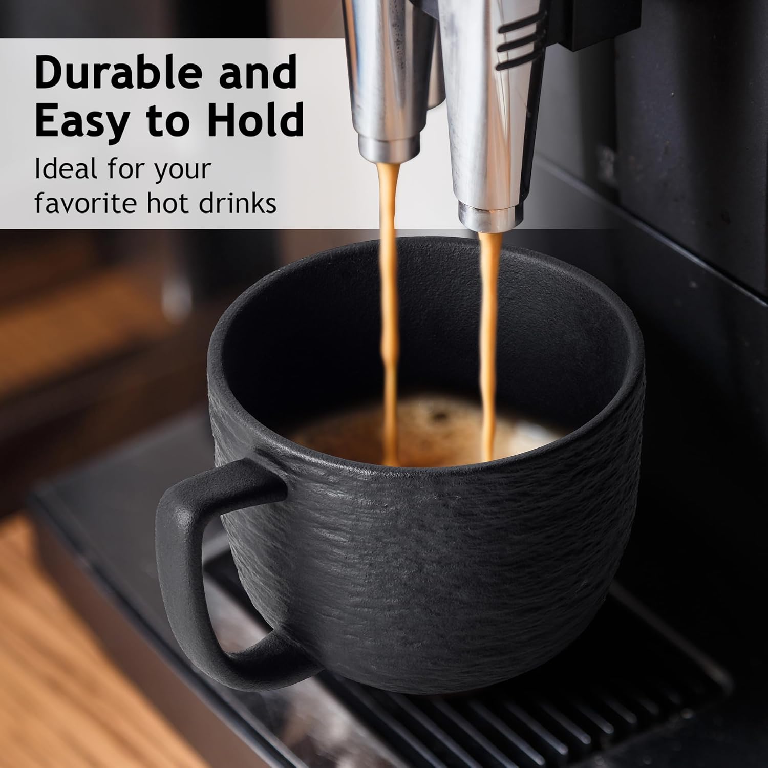 - 15 Oz 𝐂𝐀𝐏𝐀𝐂𝐈𝐓𝐘- With a diameter of 10.5 cm and a height of 8 cm, each coffee mug has a large capacity of 450 ml. This makes them perfect for enjoying coffee, latte, café latte, cappuccino, Americano, hot chocolate, macchiato, tea, or another favourite drink.