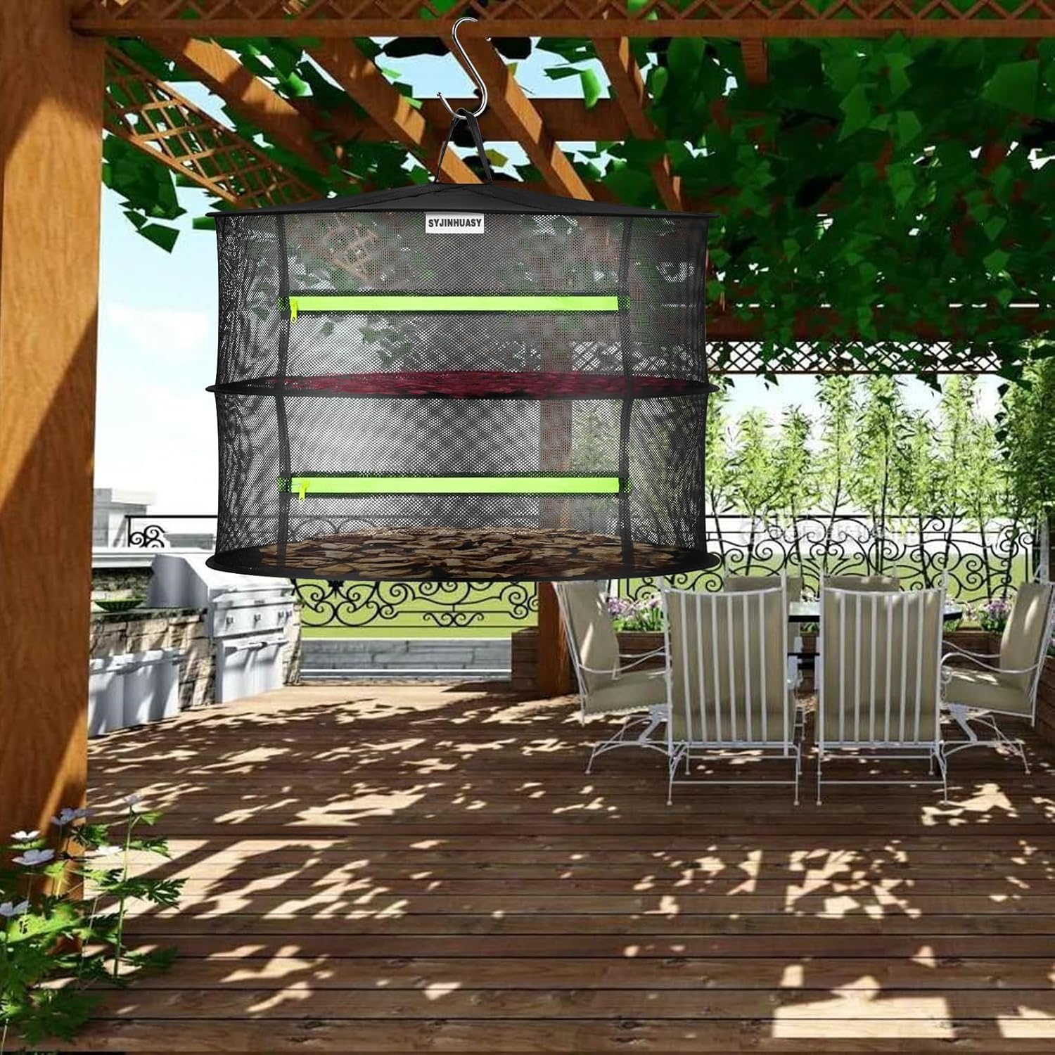 - Ventilated & Heat-absorbed: Made of nylon mesh,Each layer is 8 inches tall, with a 24-inch diameter,Each layer can load about 2.2 lbs.Wide-area, breathable, polyester mesh layers provide the dryer makes sure the excellent airflow within; Also, the black nylon can absorb the heat from sunlight perfectly, Wide-area, breathable, polyester mesh layers provide the perfect ventilation for quick drying.