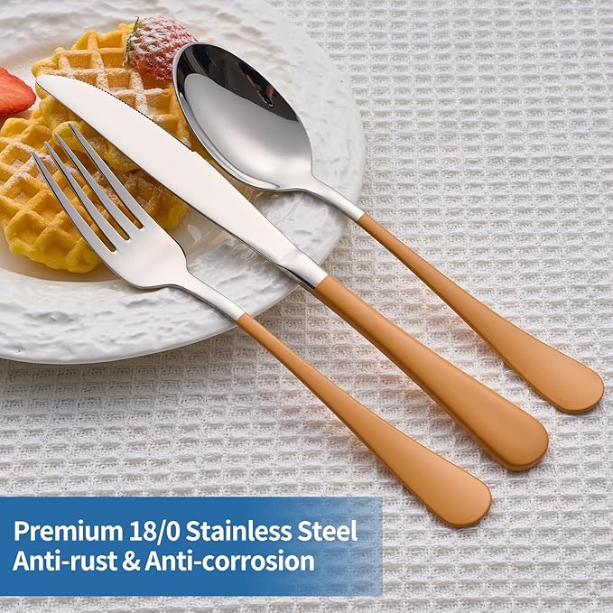 - 【Dishwasher-Safe】- The good quality colorful silverware set has the spray paint color that is very hard to wash off, simply rinse and place in the dishwasher ensures time-saving convenience when it comes to cleaning and keep sanitary, your proper care can make the utensil sets always looks as good as new, and enable the beauty cutlery to last for many years.