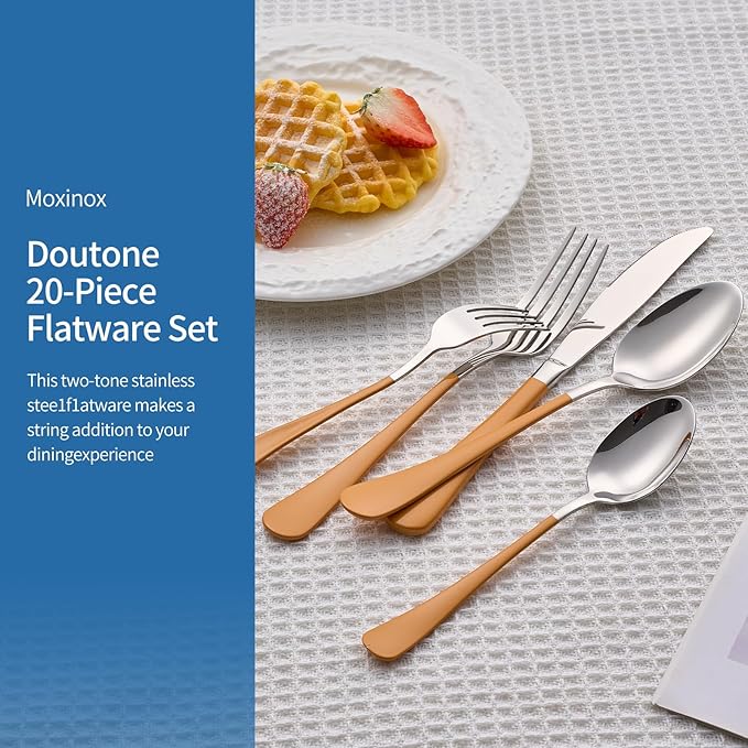 20-Piece Orange Silverware Set, 18/0 Stainless Steel Orange Handle Flatware Set, Service for 4, Modern Cutlery Set Includes Dinner Knives Forks Spoons, Mirror Polished, Dishwasher Safe