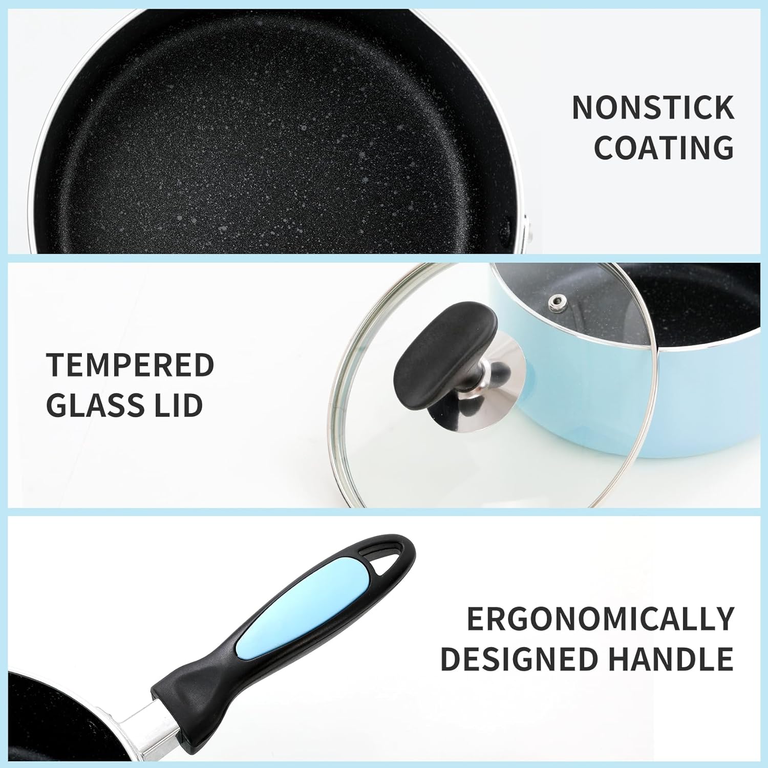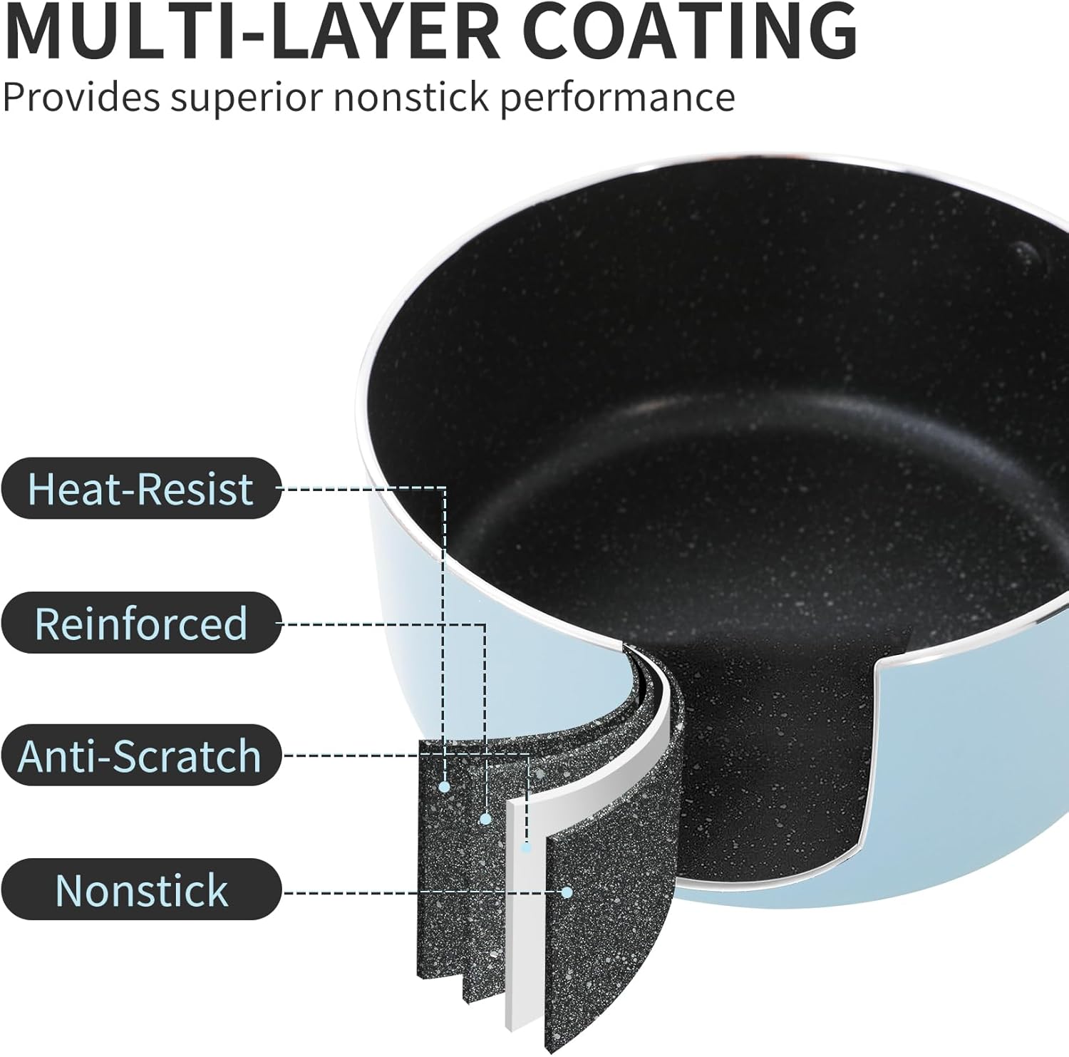 - [Multiple Layer Non Stick Coating]Premium non stick interior featured exceptionally durable, double coated, and scratch resistant,which is ideal for easy cooking,re-heating vegetables,sauces,pasta or soup.Easy to clean for superior nonstick performance,just clean by soft sponges.