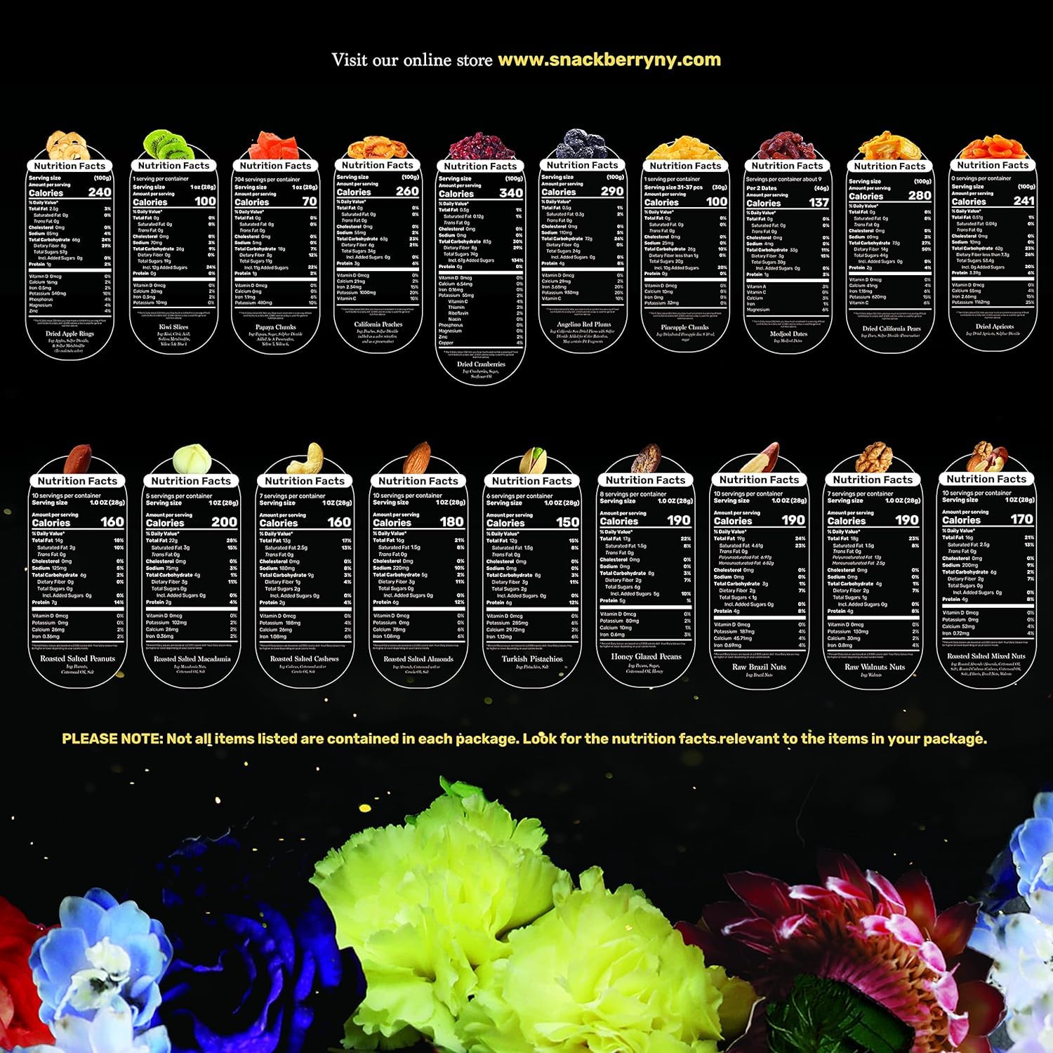 - Gourmet Gift Baskets With Premium Quality: At Snackberry we pride ourselves in our commitment to quality and freshness in every gift box. The assorted dried fruit and nuts are individually sourced from the finest artisanal producers around the country and boast the perfect texture, quality, and taste. These prime dried fruits and nuts are fresh, organic, and kosher
