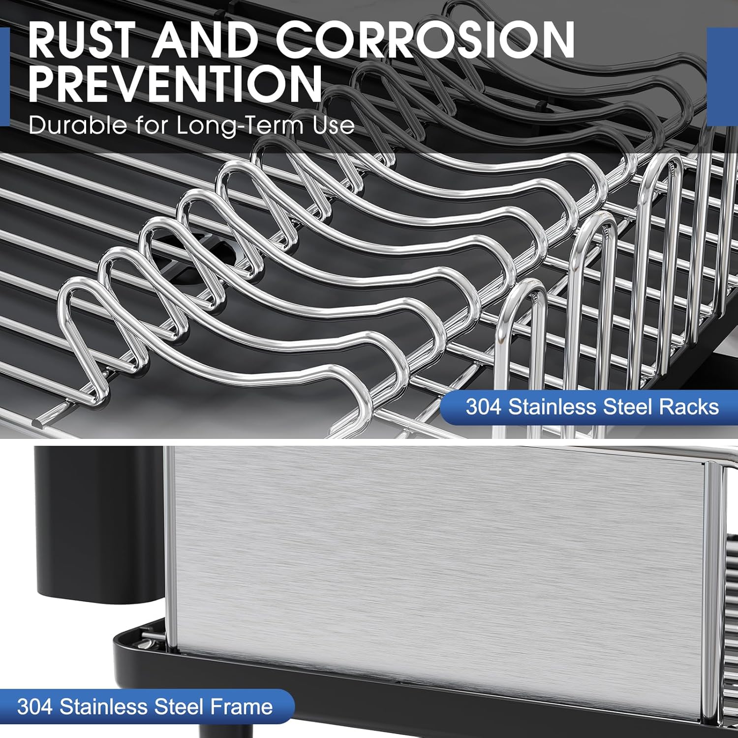 Stainless Steel Dish Drying Rack - Large Capcity 304 Grade Dish Drainer for Kitchen Counter with Drain Board, Utensil Holder & Detachable Cup Shelf, Rustproof Multifunctional Organizer