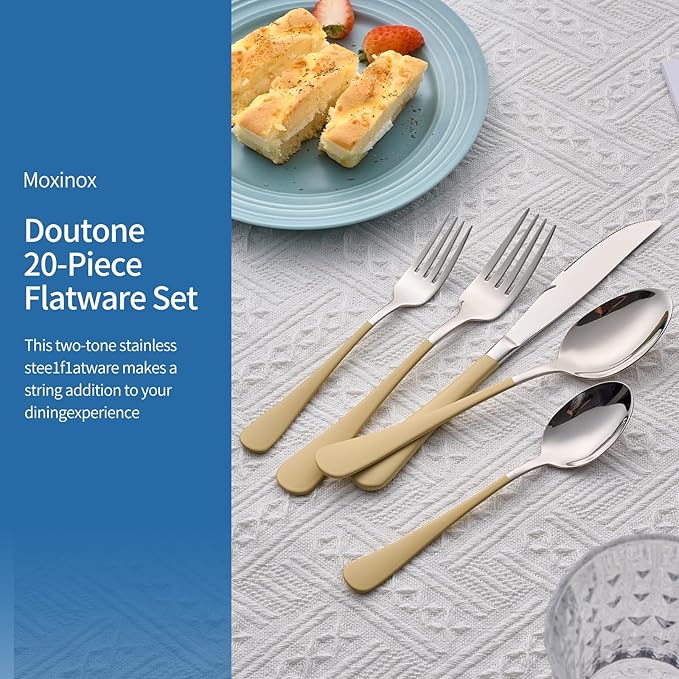 - 【20-Piece 18/0 Silverware Set for 4】- 20 piece 18/0 colorful silverware set , Includes dinner knife set of 4, dinner forks set of 4, dinner spoons set of 4, salad forks set of 4, teaspoons set of 4, perfect silverware set for 4 people family.