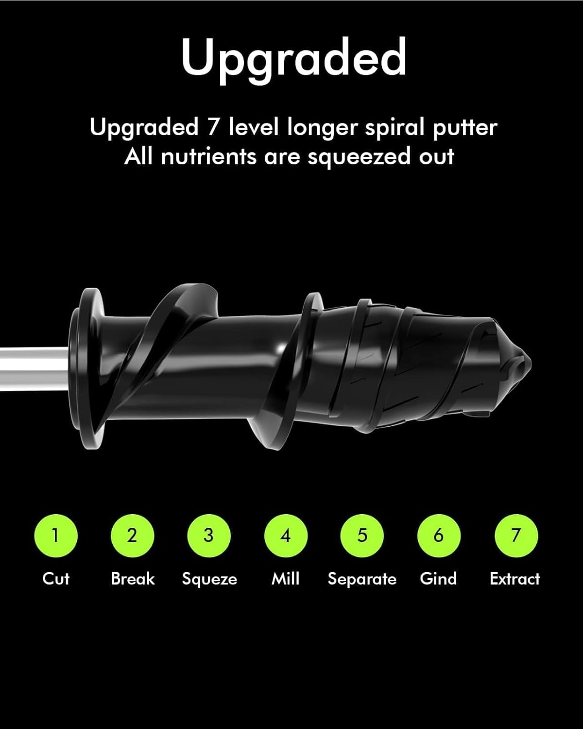 - 【Continuous Juicing, No Clogs】Enjoy smooth, clog-resistant juicing with our Slow Juicer Gen 2's dual chute system. Its positive pressure spiral design enables simultaneous feeding and pushing of ingredients, maximizing juice output in minimal time.