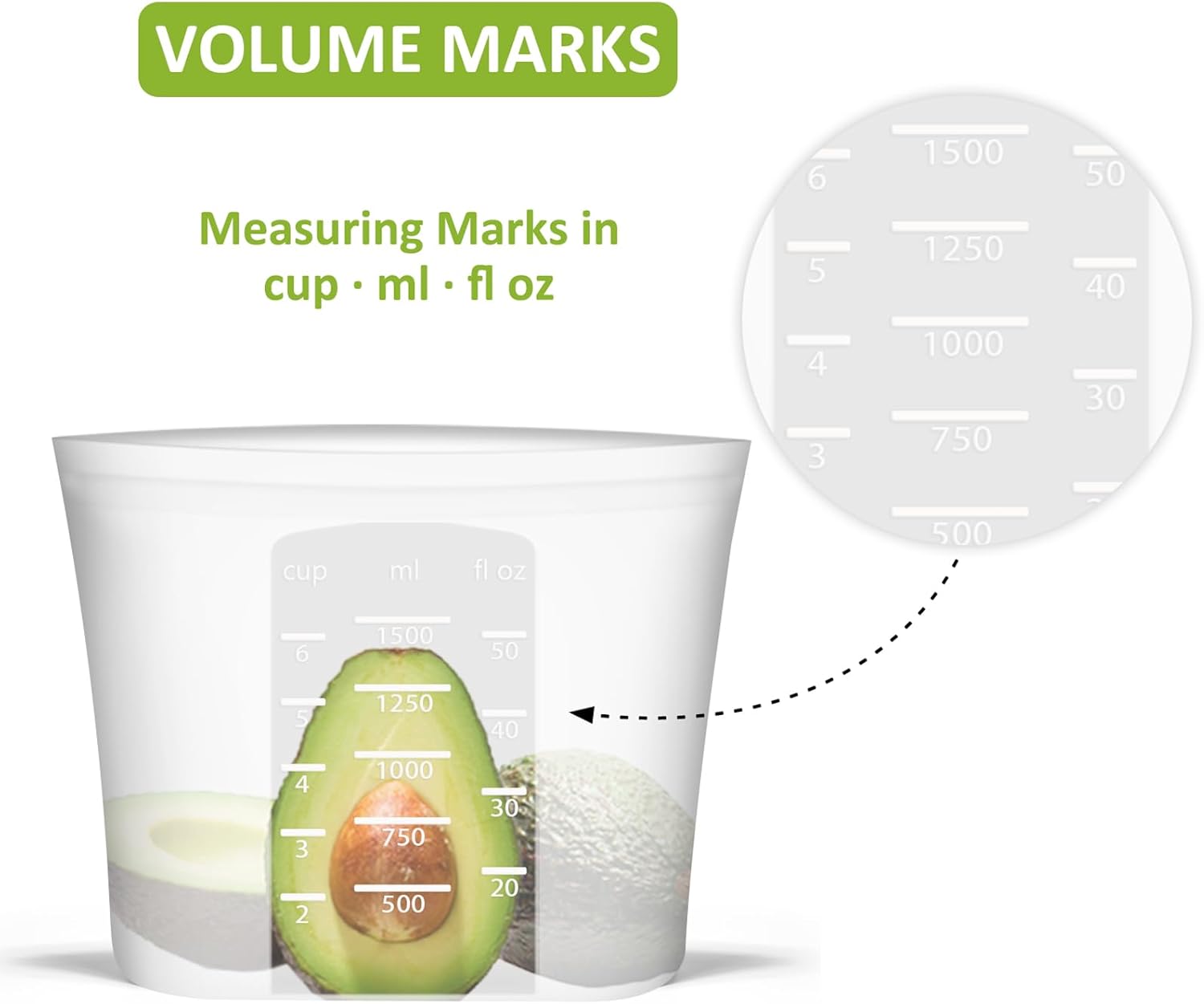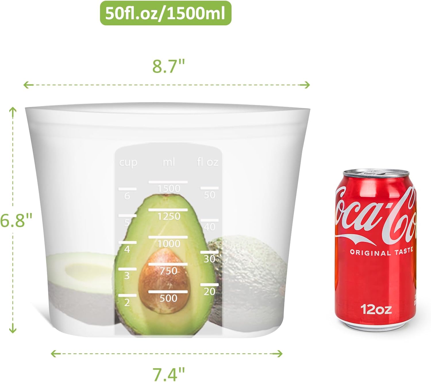- 【THOUGHTFUL & ECONOMICAL】Medium size: 1.5quart/50.7fl.oz/1500ml. This reusable zip bag for food clearly marked measurements in cups, ml, and fl oz for easy use. Translucent body offers a glimpse inside. Robust construction ensures strength. One silicone bag can replace 300+ single-use plastic bags, saving money and creating a waste-free world