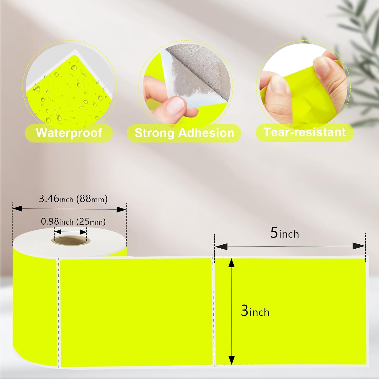 3 X 5 Inch Printable Rectangle Color Coding Labels, 300 Per Roll Adhesive Color Coding Stickers for Bar-Codes, Address, Small Business Labeling, Inventory, Fluorescent Yellow