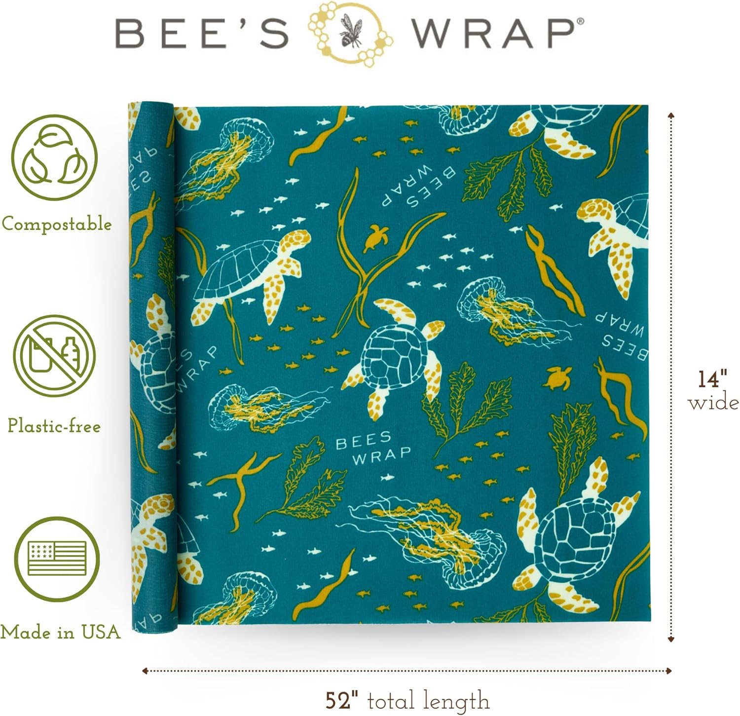 - BEESWAX WRAPS FOR FOOD in a large 14" x 52" wax paper roll featuring a colorful underwater ocean design. Made in USA reusable beeswax food wraps are a great alternative to single use plastic wrap, sandwich wraps, and aluminum foil.
