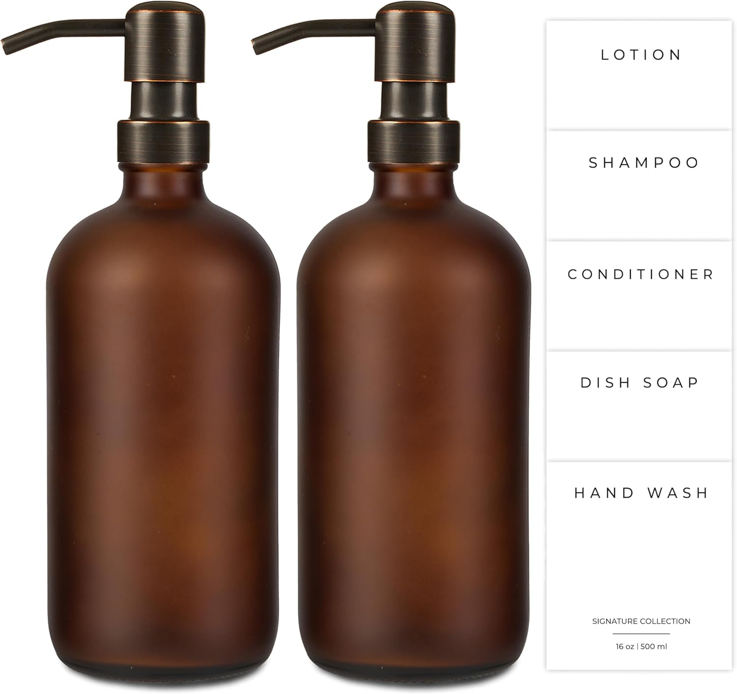 - ✅ KITCHEN OR BATHROOM USE: While other dispensers peel over time, our dispensers are made of premium quality and last far longer. The bathroom soap dispensers and kitchen soap dispenser set are 16 ounces and are refillable, requiring fewer refills. Ideal for using as a bathroom soap dispenser set and the glass soap dispenser with pumps boast 2 cc stainless steel pumps.