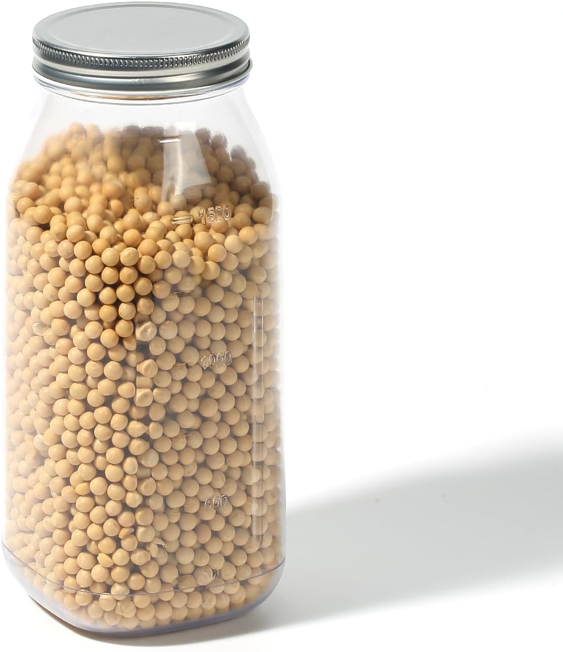 novelinks 64 oz Large Plastic Jars with Metal Lids - 4 Pack BPA-Free Clear Storage Containers for Pantry, Pickles, Sauces, Flour, Snacks - Leak-Proof Airtight Food Grade Jars for Kitchen (Silver)
