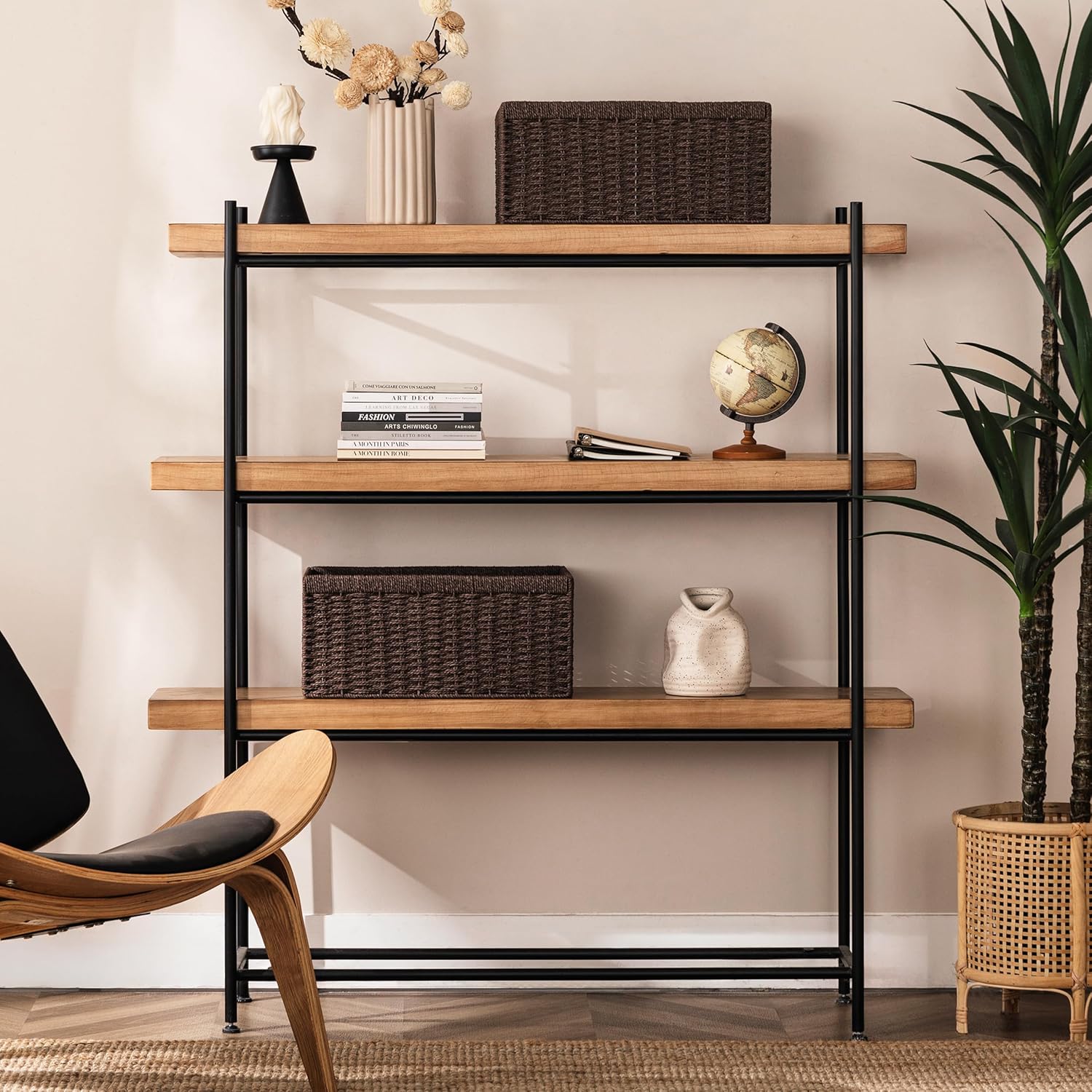 UBBCARE 3 Pack Wicker Basket, 13.4L×8.3H×7.1W inch Woven Paper Rope Storage Baskets for shelves, Foldable Rectangular Storage Baskets with Handle, Storage Basket for Organizing, Dark Brown