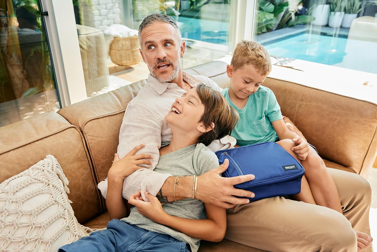 PackIt Freezable Classic Lunch Box, True Blue, Built with ECOFREEZE Technology, Collapsible, Reusable, Zip Closure With Front Pocket and Buckle Handle, For Work Lunches and Fresh Lunch On the Go