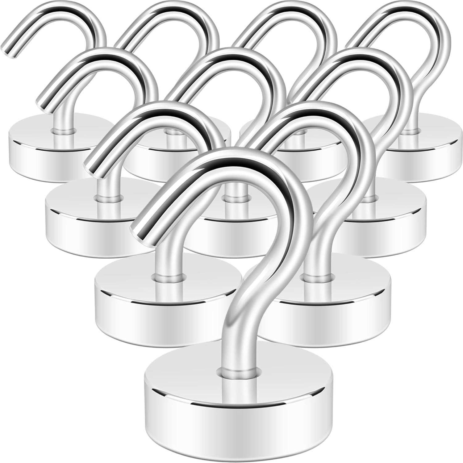 Neosmuk Magnetic Hooks, Cruise Ship Essentials, 30lb+ Heavy Duty Magnetic Hooks for Cruise Cabins, Refrigerator, Grill, Hanging, and Travel | Extra Strong Must-Haves Magnet Hook,Silver,Pack of 10