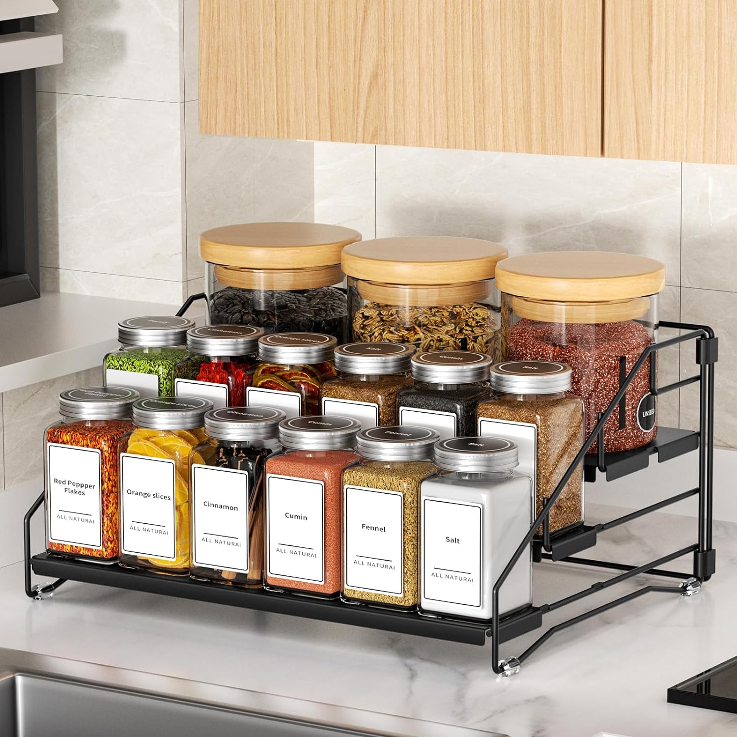 - Metal Material Strong & Sturdy: Seasoning organizer is made of high-quality metal, the each tier has a sheet metal base design. making the spice bottles more stable to place and less likely to tip over. With cabinet spice rack, you can nicely organized your spice bottles in your cabinet in leveled tiers.