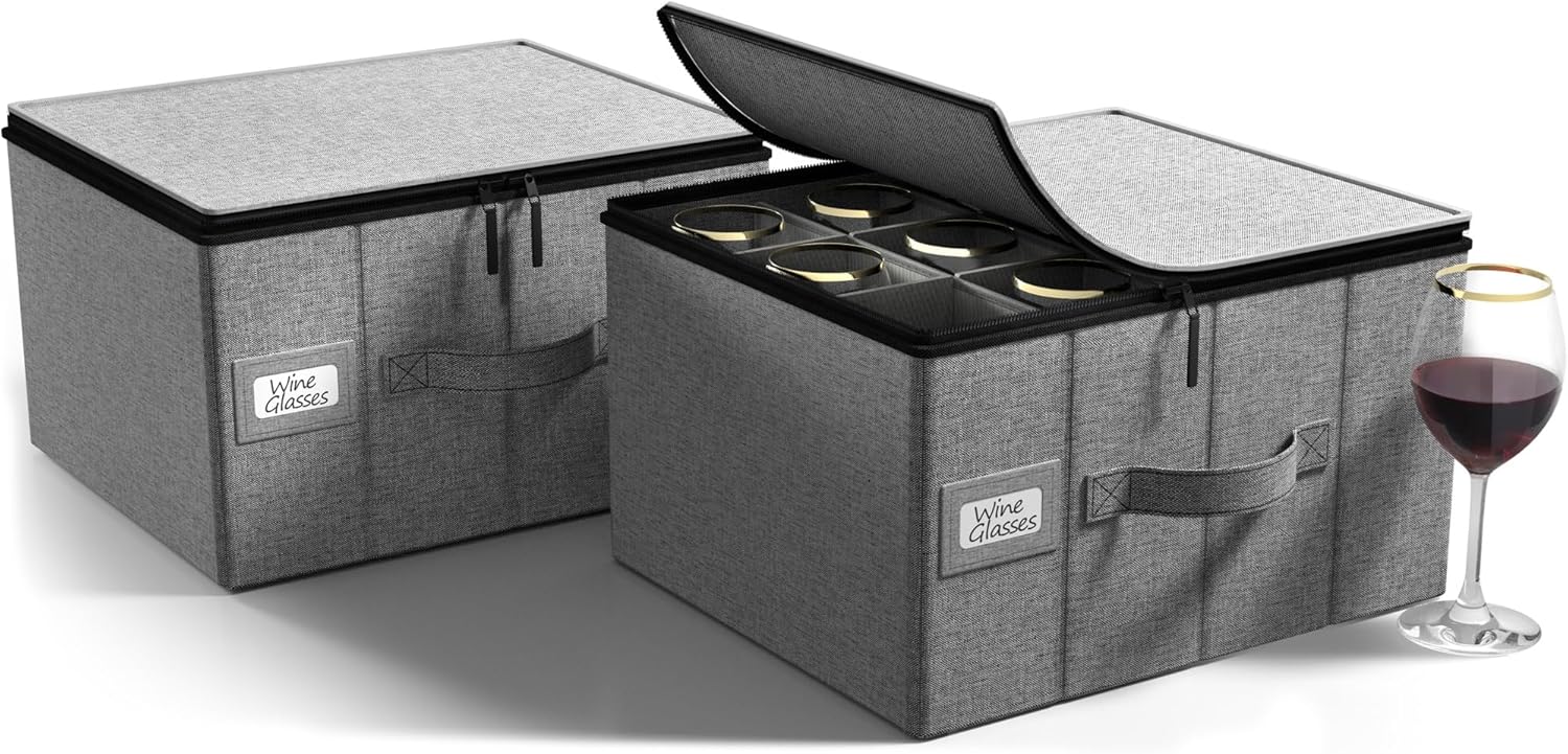 - Sorbus China Stemware Storage Case (Gray): This wine glass storage box with dividers helps keep cherished stemware in mint condition, dust-free, and ready to entertain - Wine box fits 12 wine glasses