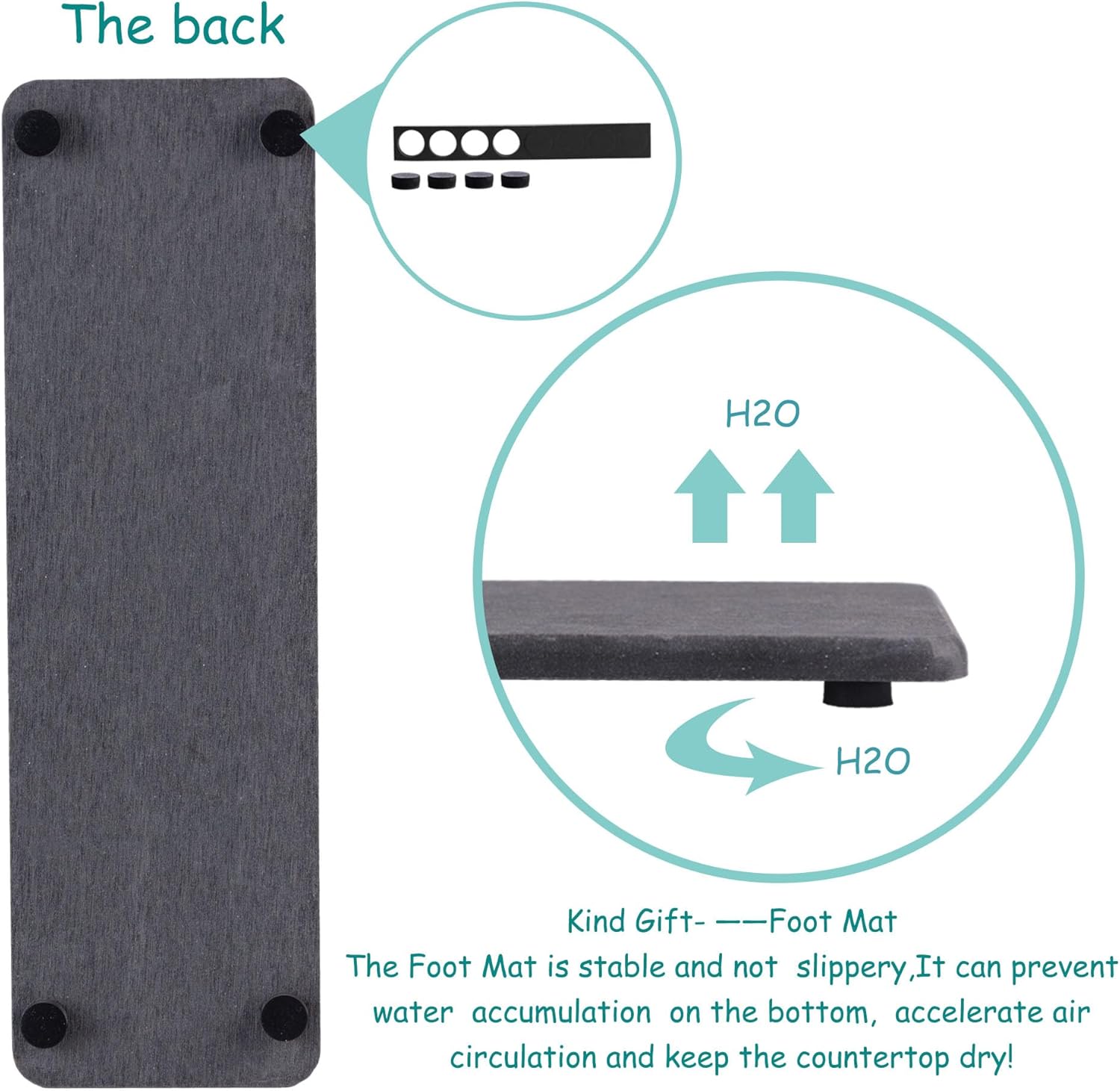 - Made from natural Diatom mud and plant fiber, small holes within diatomite enable it have amazing water absorption. They could absorb water and gets dry in a few minutes. It makes the Bathroom Counter top more dry and tidy.