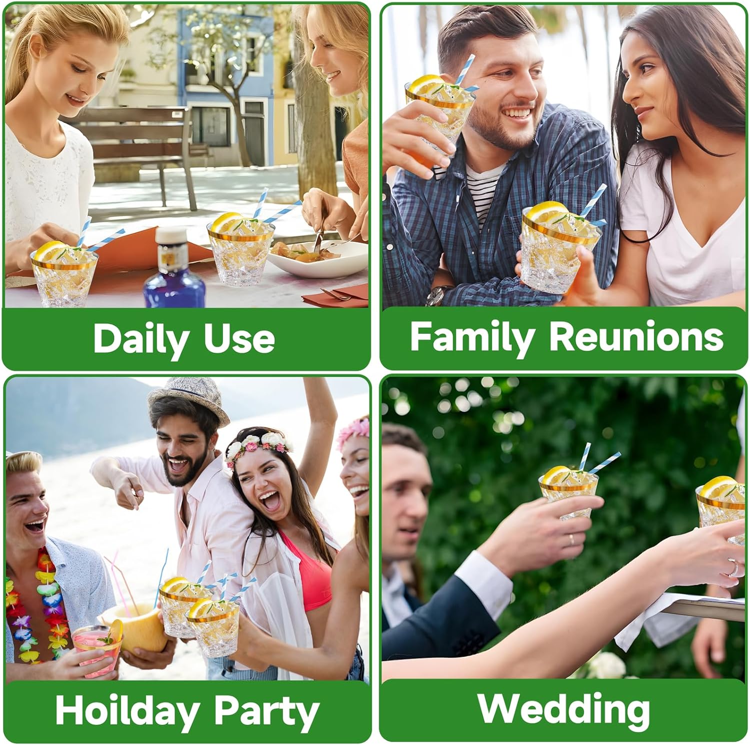 - Great For Any Occasion: Our gold rim plastic cups have a 9 oz capacity and are suitable for most occasions.For example:weddings, birthdays, Thanksgiving, Christmas, family reunions and other events.