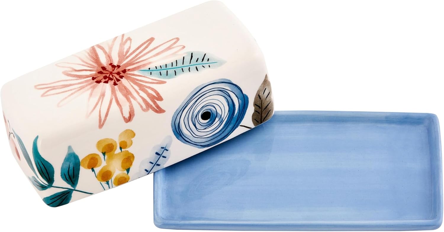 Bico Blossom Symphony Ceramic Butter Dish with Lid, Wide Butter Keeper for Counter, Kitchen Countertop, Microwave and Dishwasher Safe