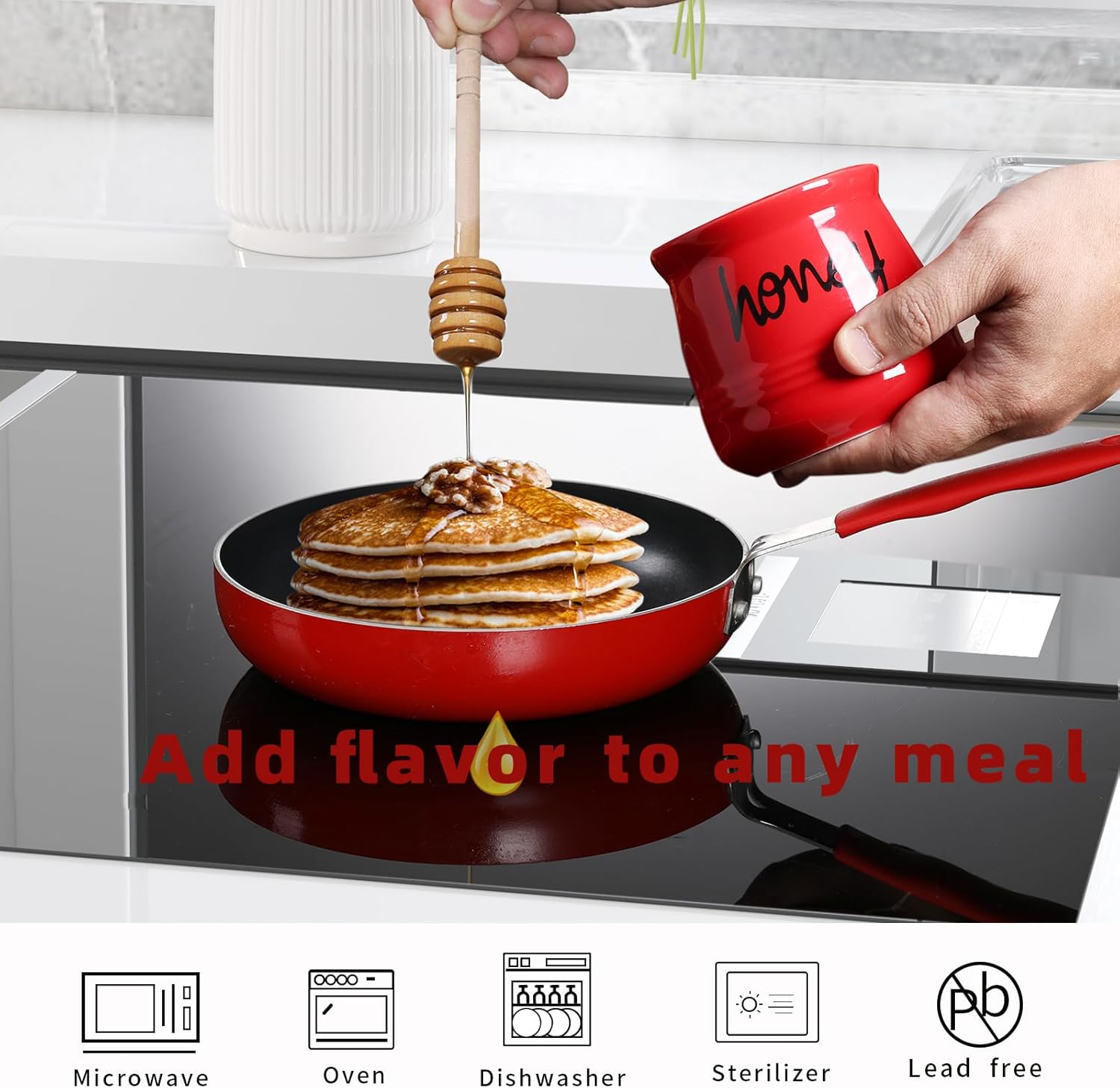 - CERAMIC MATERIAL: This honey jar is made of ceramic.The surface is smooth and translucent , which is easy to clean.It can be washed in the dishwasher