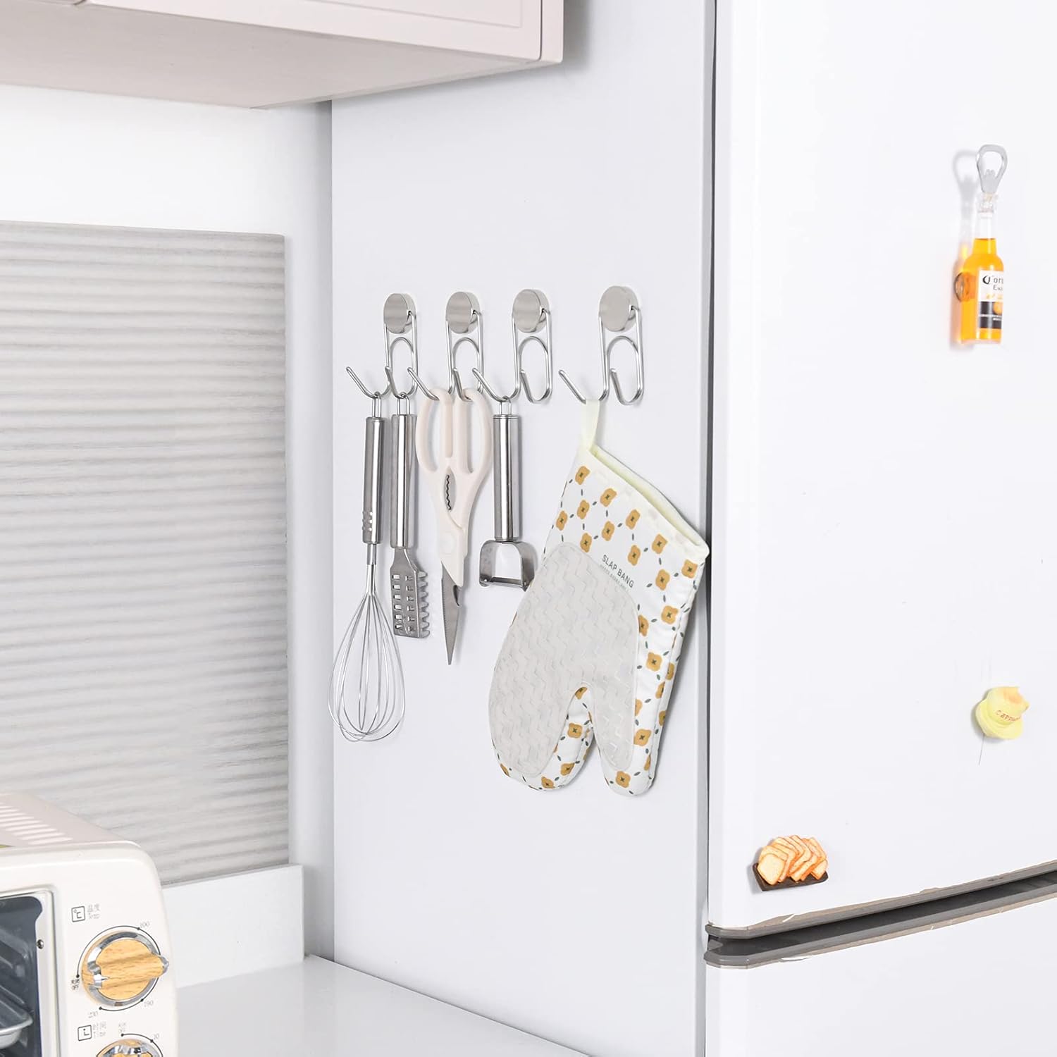 Magnetic Hooks 304 Stainless Steel Hooks Heavy Duty Magnets Hanging Hooks for Refrigerator Grill Toolbox Cabins Outdoor,Cruise Essentials Camper Accessories,8pack(Silver,1.3in-2)