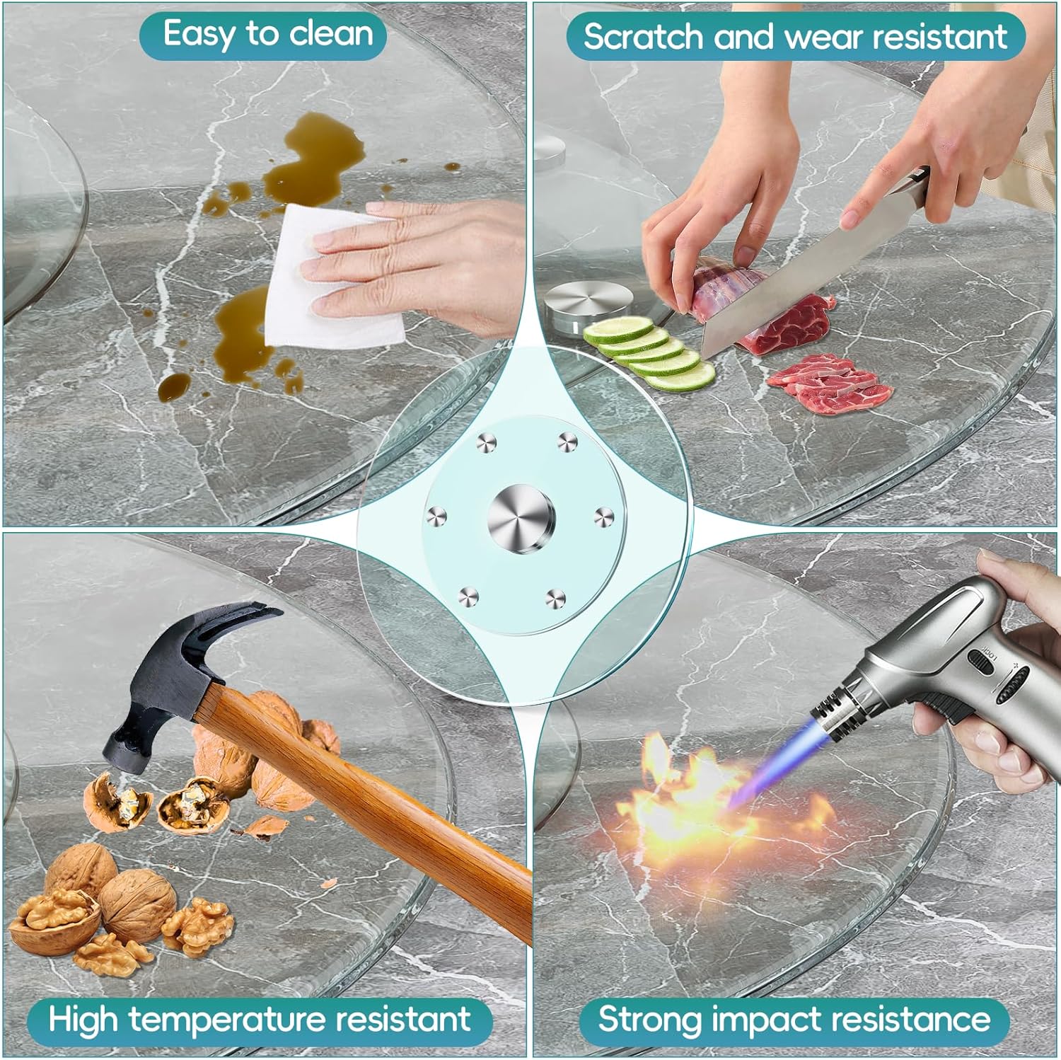 - 【GLASS LAZY SUSAN】The Lazy Susan for dining table can make the food and condiments on the table easier for everyone to reach without having to reach back and forth, providing a fun dining experience for your family. Perfect for banquets, restaurants, weddings, parties, kitchens and more.